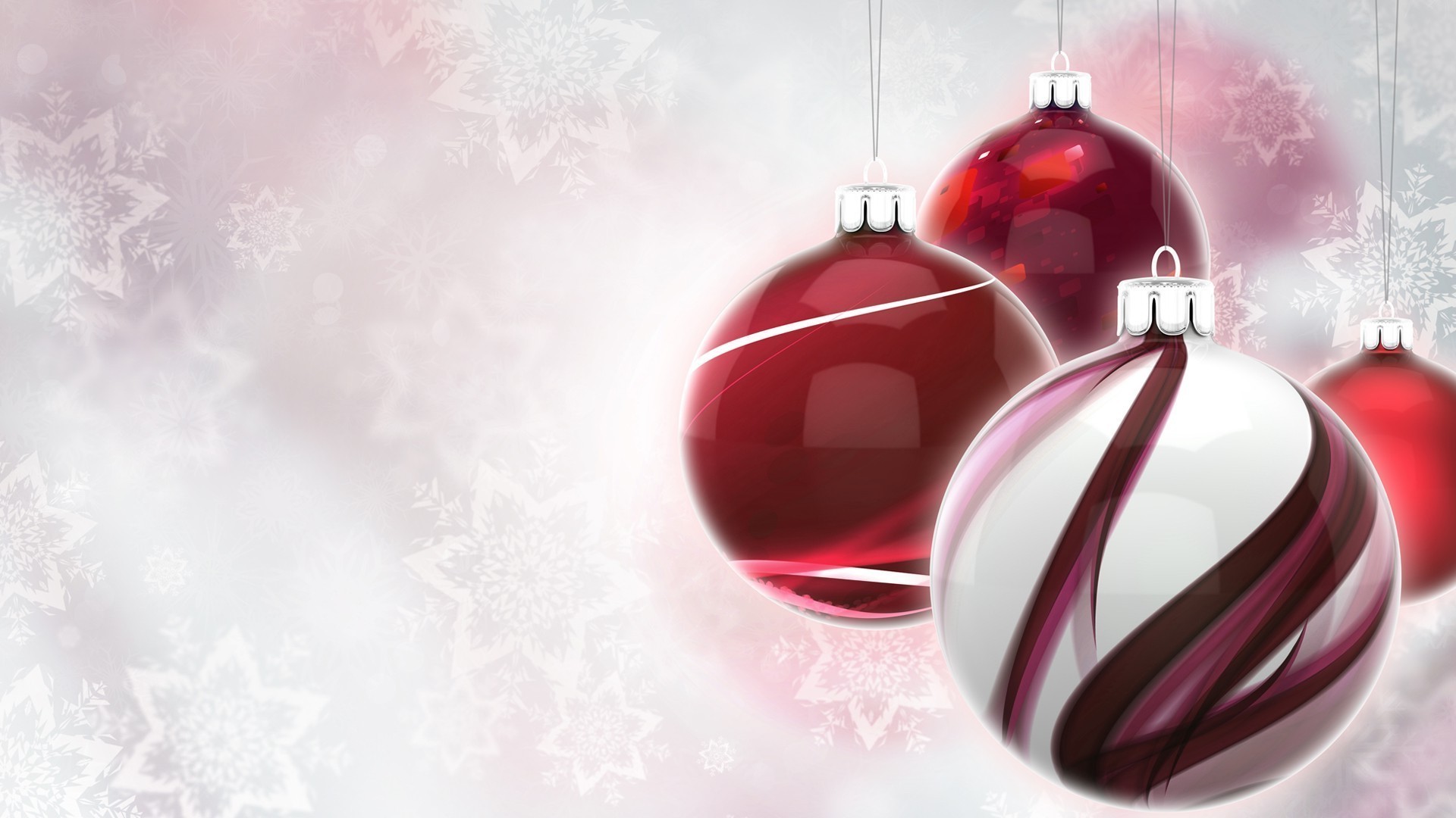 Palle rosse su uno sfondo di fiocchi di neve - sfondo del desktop
