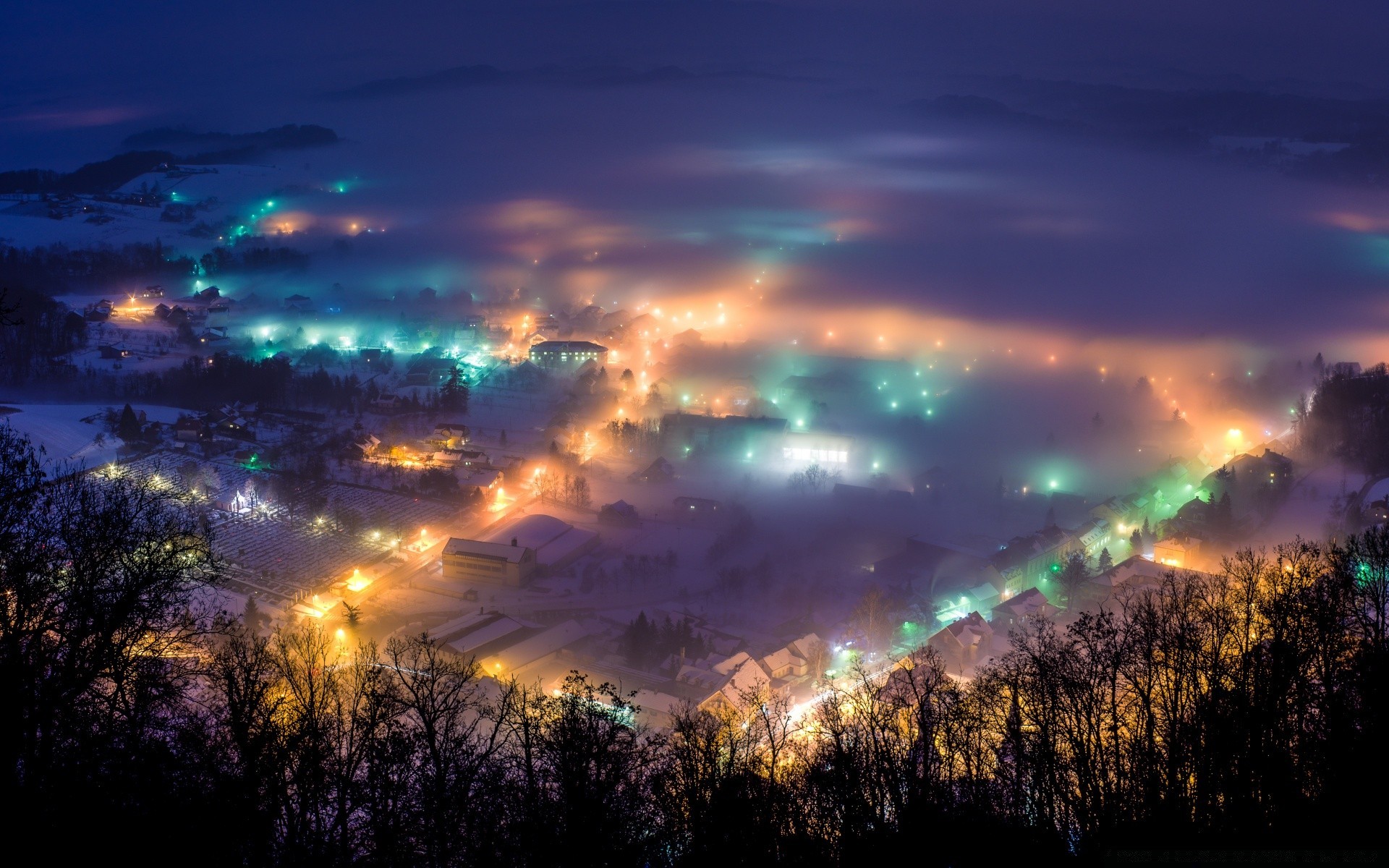 Terreno illuminato da lanterne luminose - sfondo del desktop