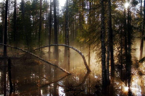 Fiume scuro tra la foresta oscura