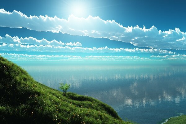 Lago sole acqua riflessione