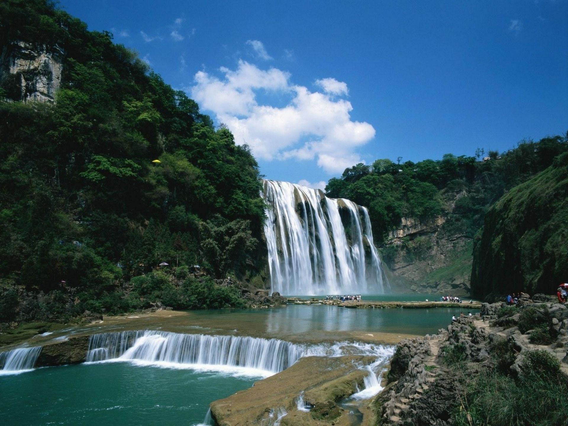 Il fiume si trasforma in una cascata sullo sfondo della steppa