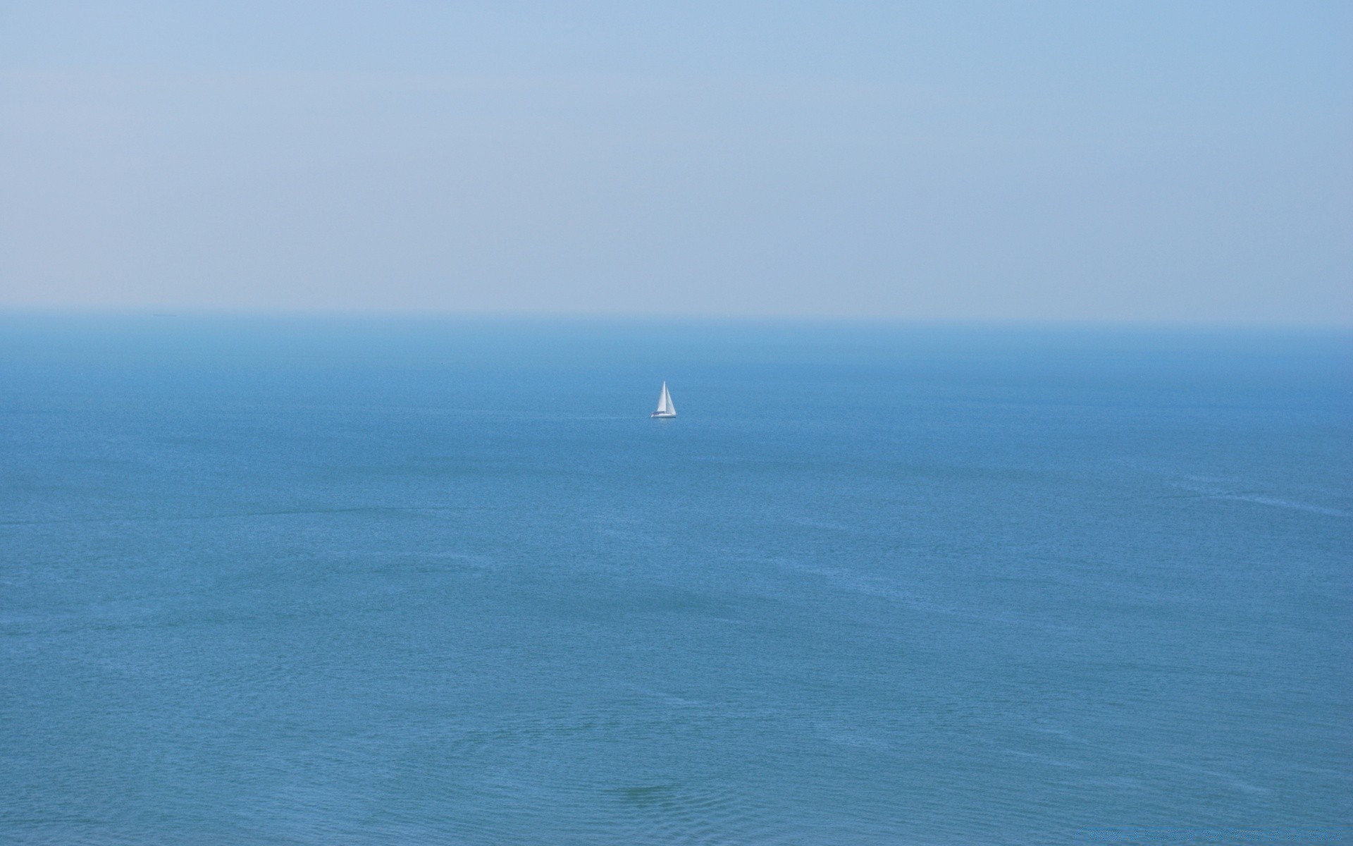 Al tramonto, il mare si fonde con le nuvole d'aria