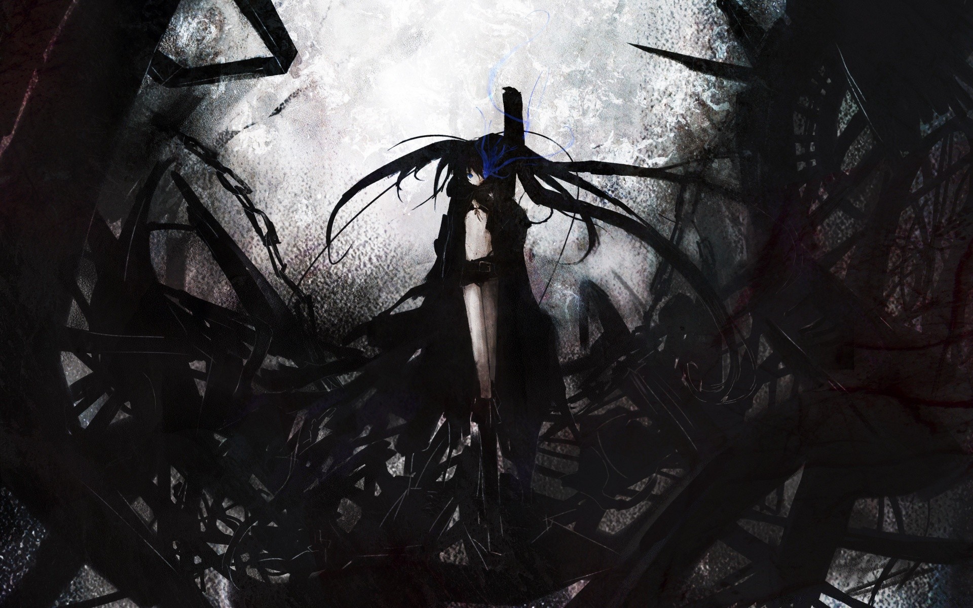 Anime eroina, ragazza in abito nero e grigio con una spada