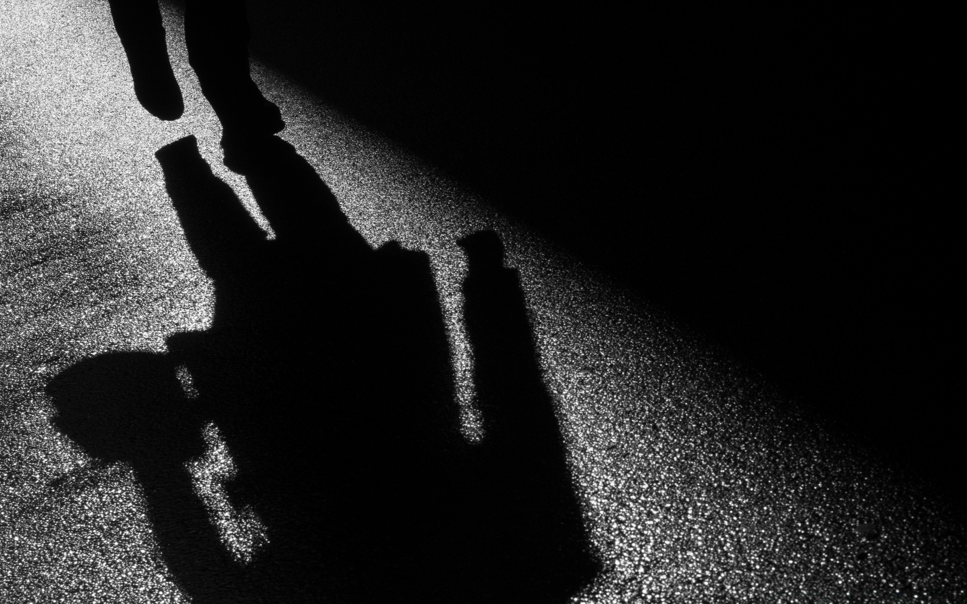 Ombra dell'uomo sull'asfalto bagnato