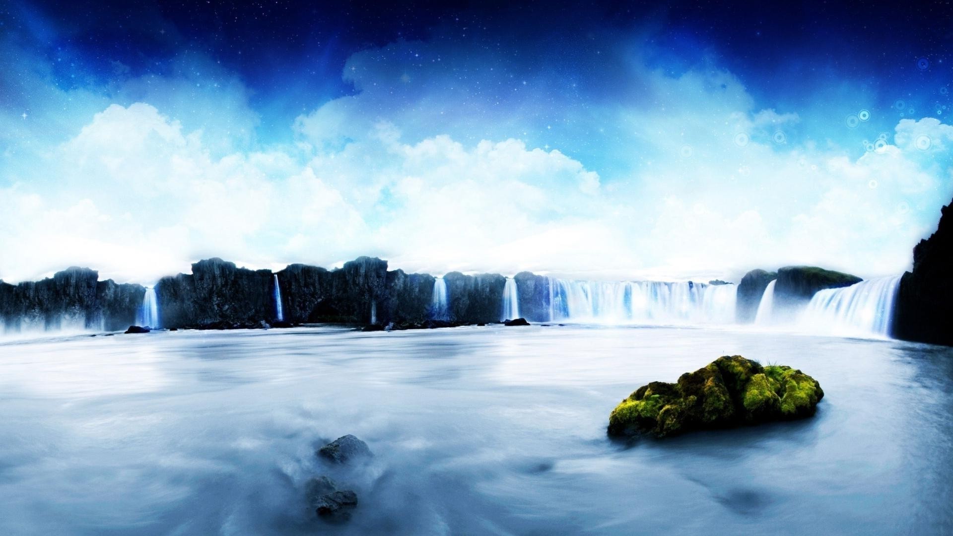 Cascate affascinanti sullo sfondo del cielo