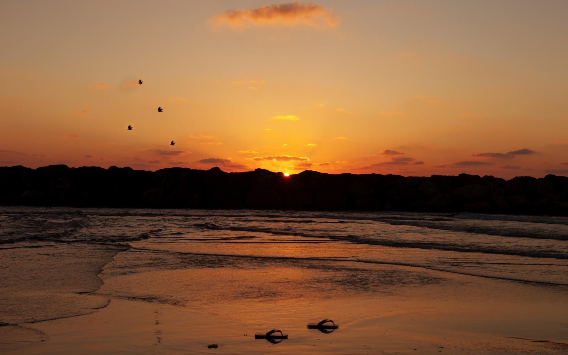 Spiaggia di mare sullo sfondo di una dolce montagna