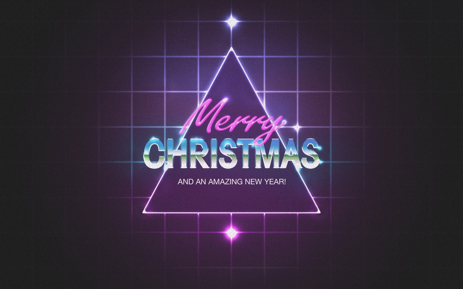 Iscrizione verde in inglese con giocattoli di Natale appesi su sfondo rosso