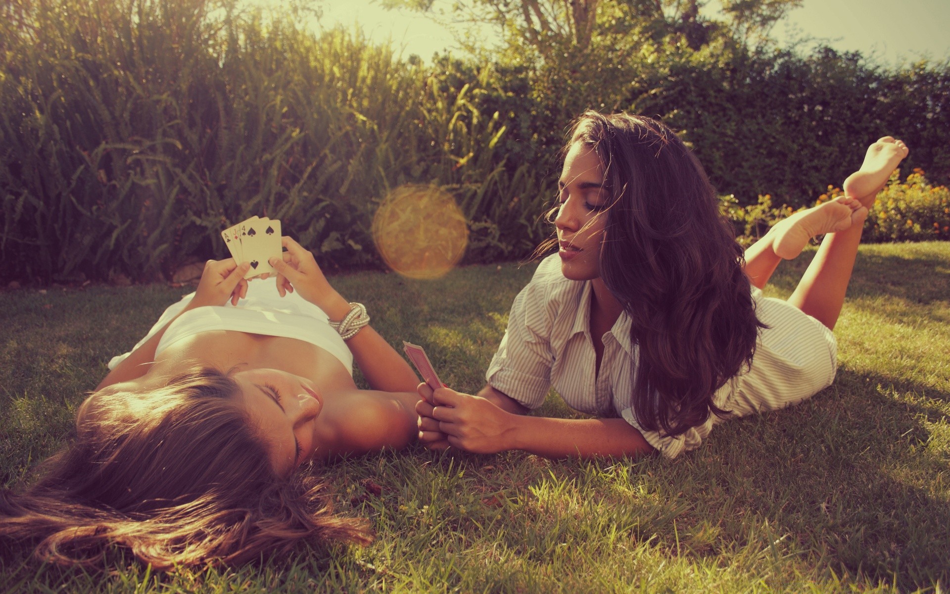 Due ragazze che riposano sull'erba