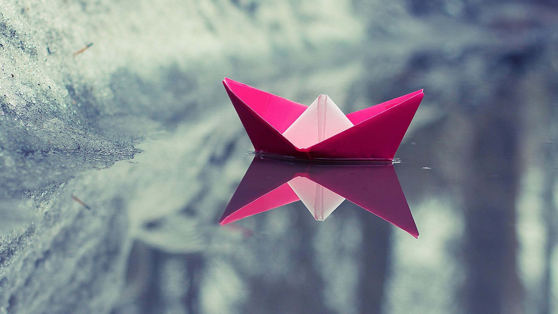 Barca di carta rosa sull'acqua