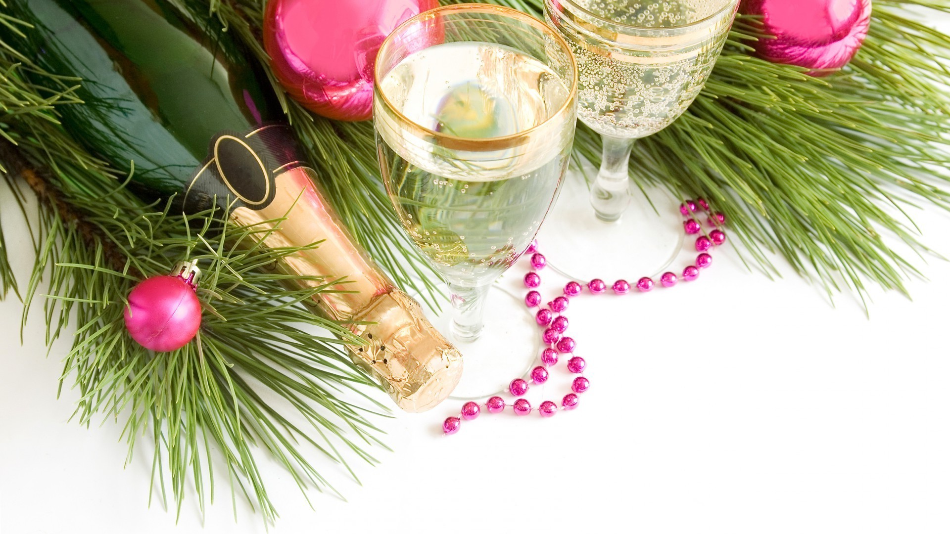 Decorazioni di Capodanno sullo sfondo di rami di abete rosso
