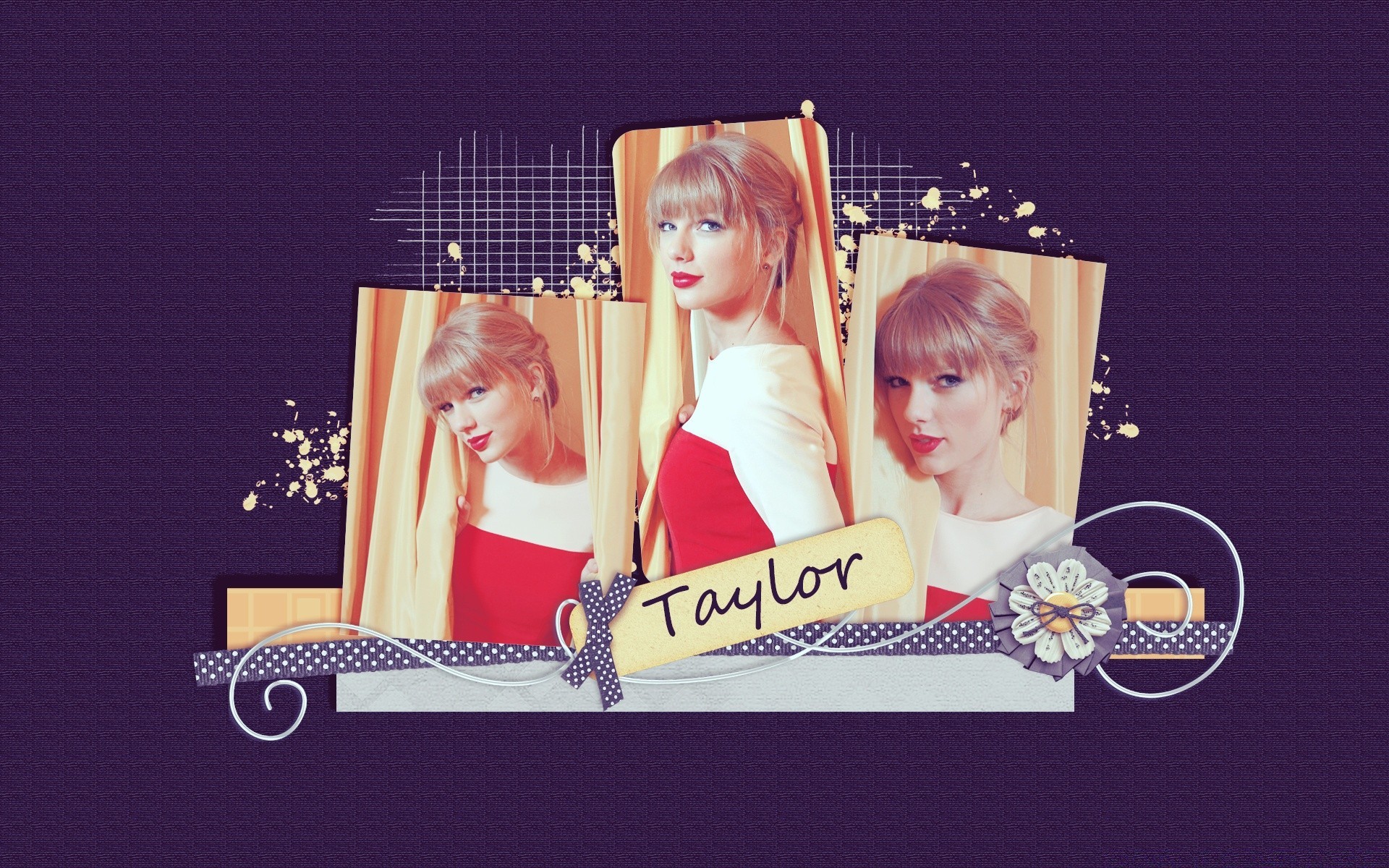 Collage di foto con Taylor Swift in abito rosso