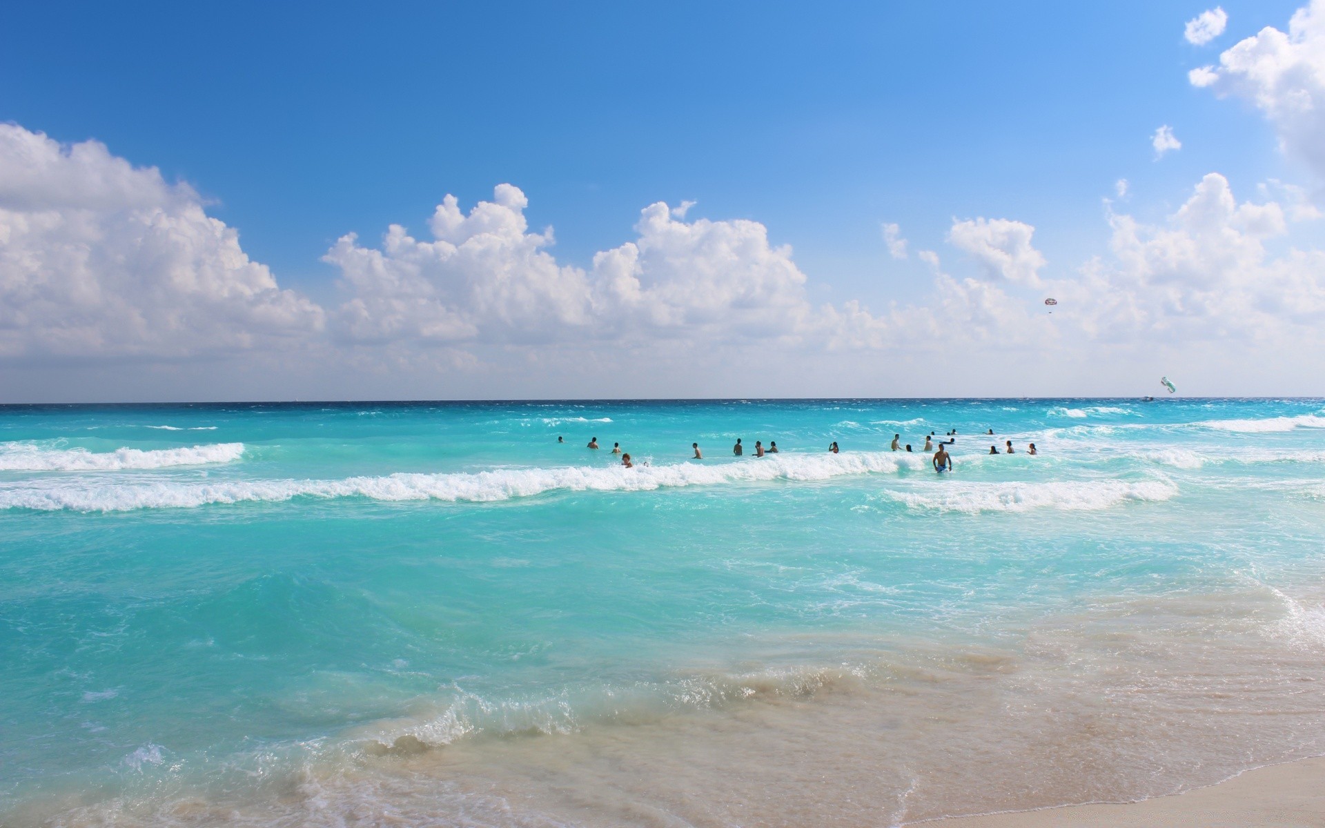 Persone che nuotano nell'acqua di colore azzurro