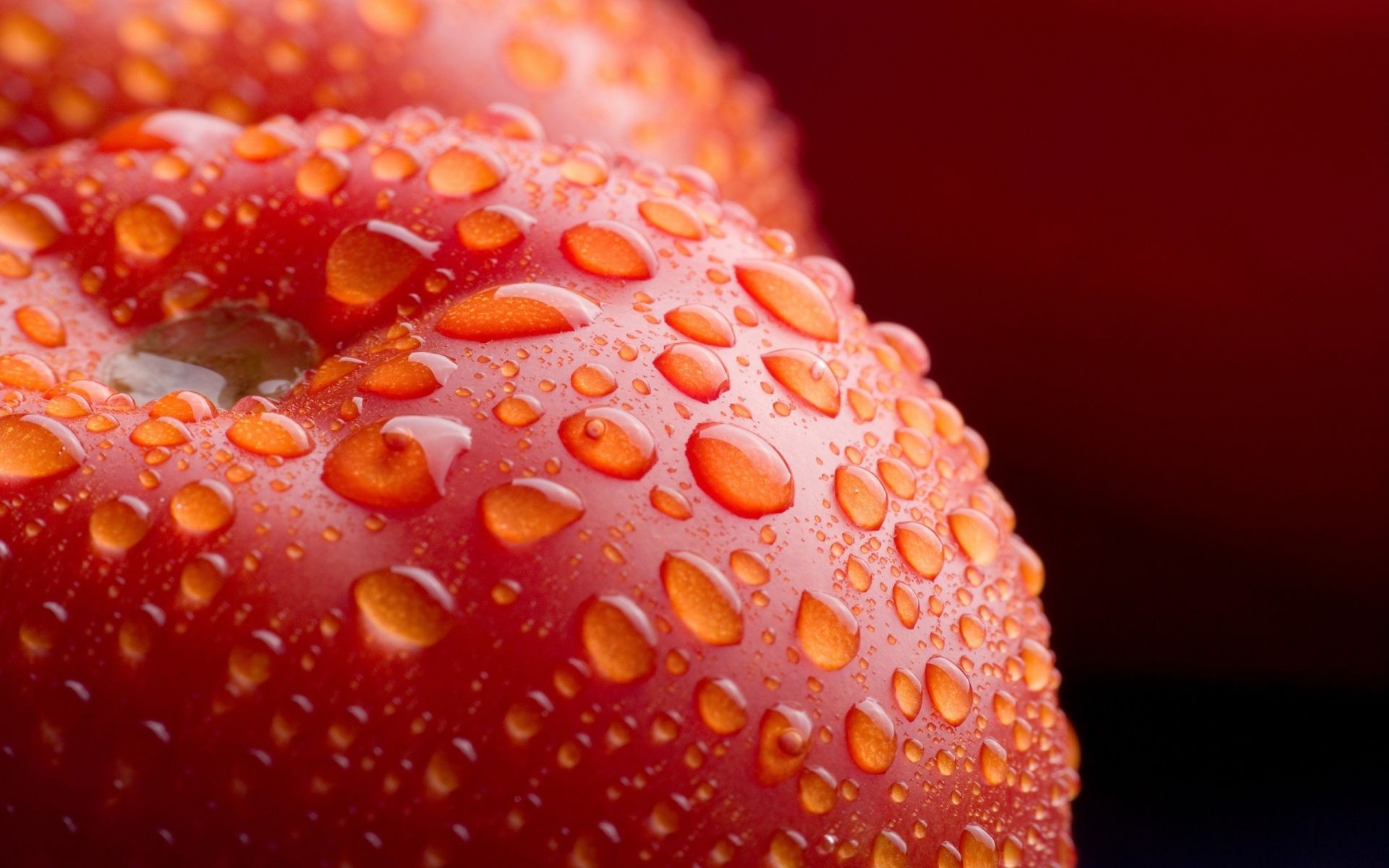 Immagine ingrandita di goccioline d'acqua sulla frutta