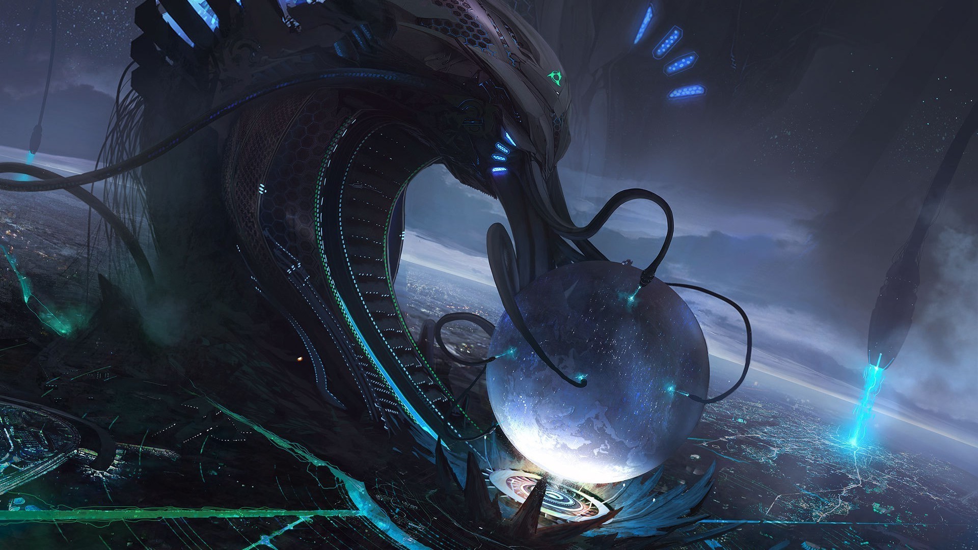 Costruzione fantastica con illuminazione al neon
