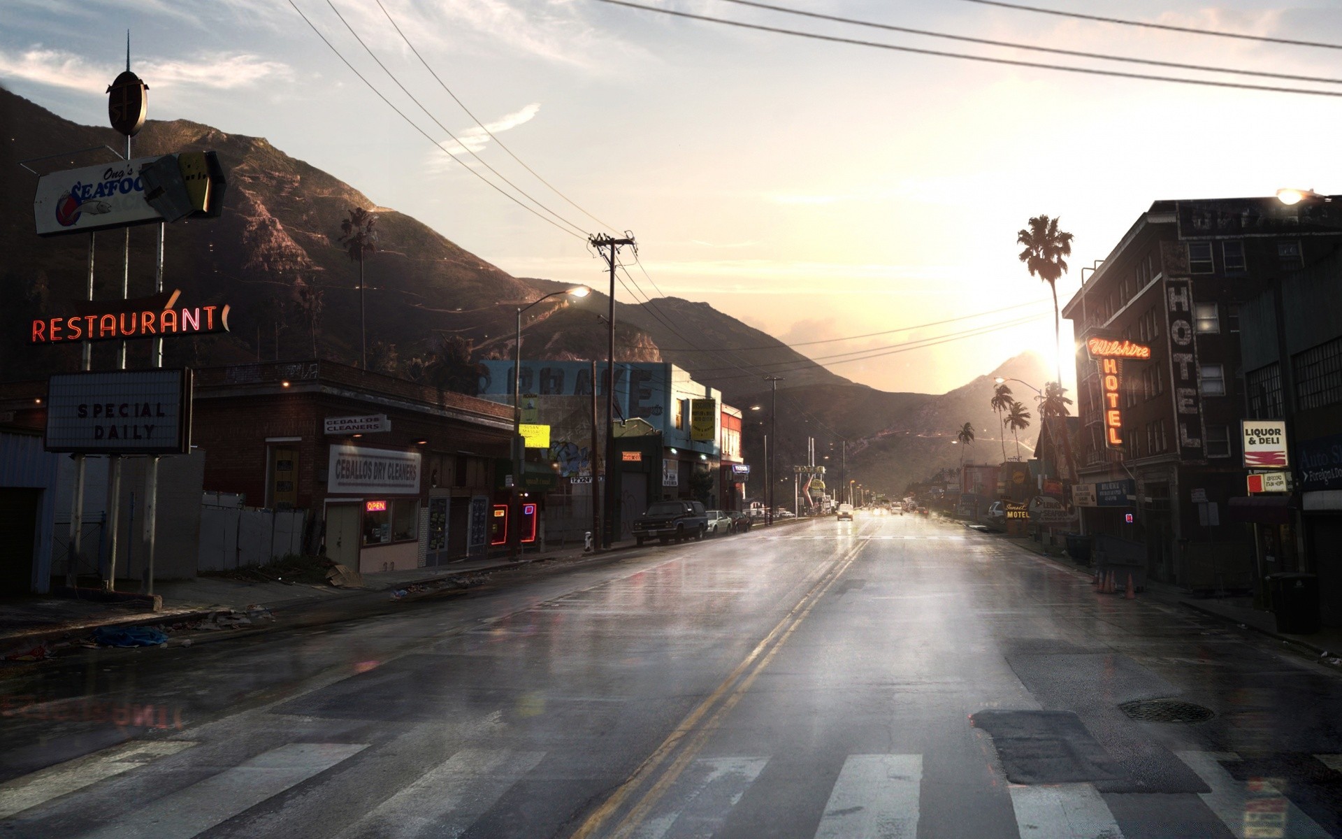 Strada con case e montagne