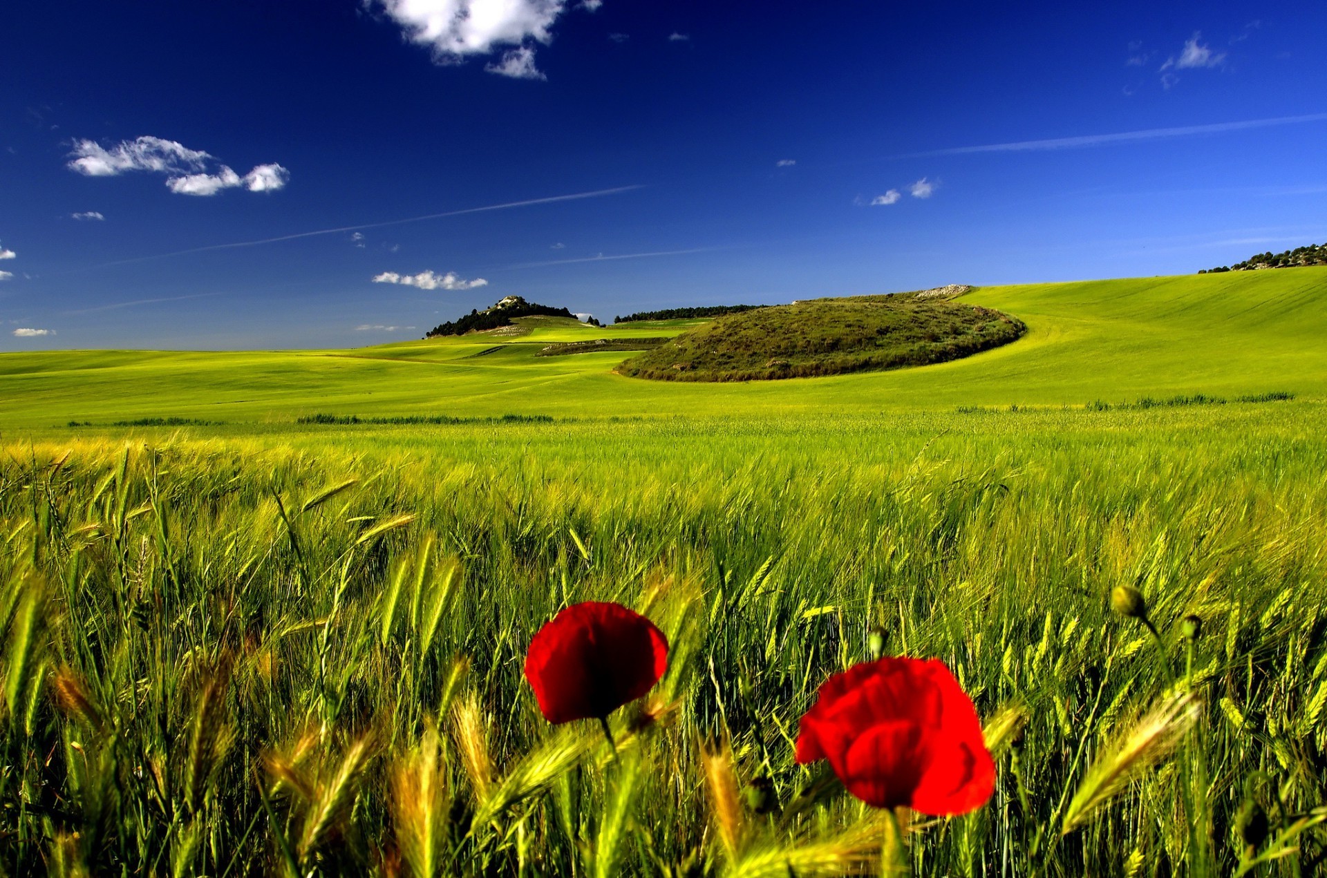 Campo. Papaveri rossi. Erba verde