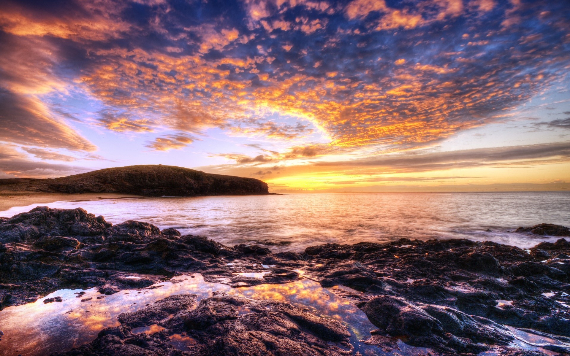 Paesaggio del tramonto in riva al mare