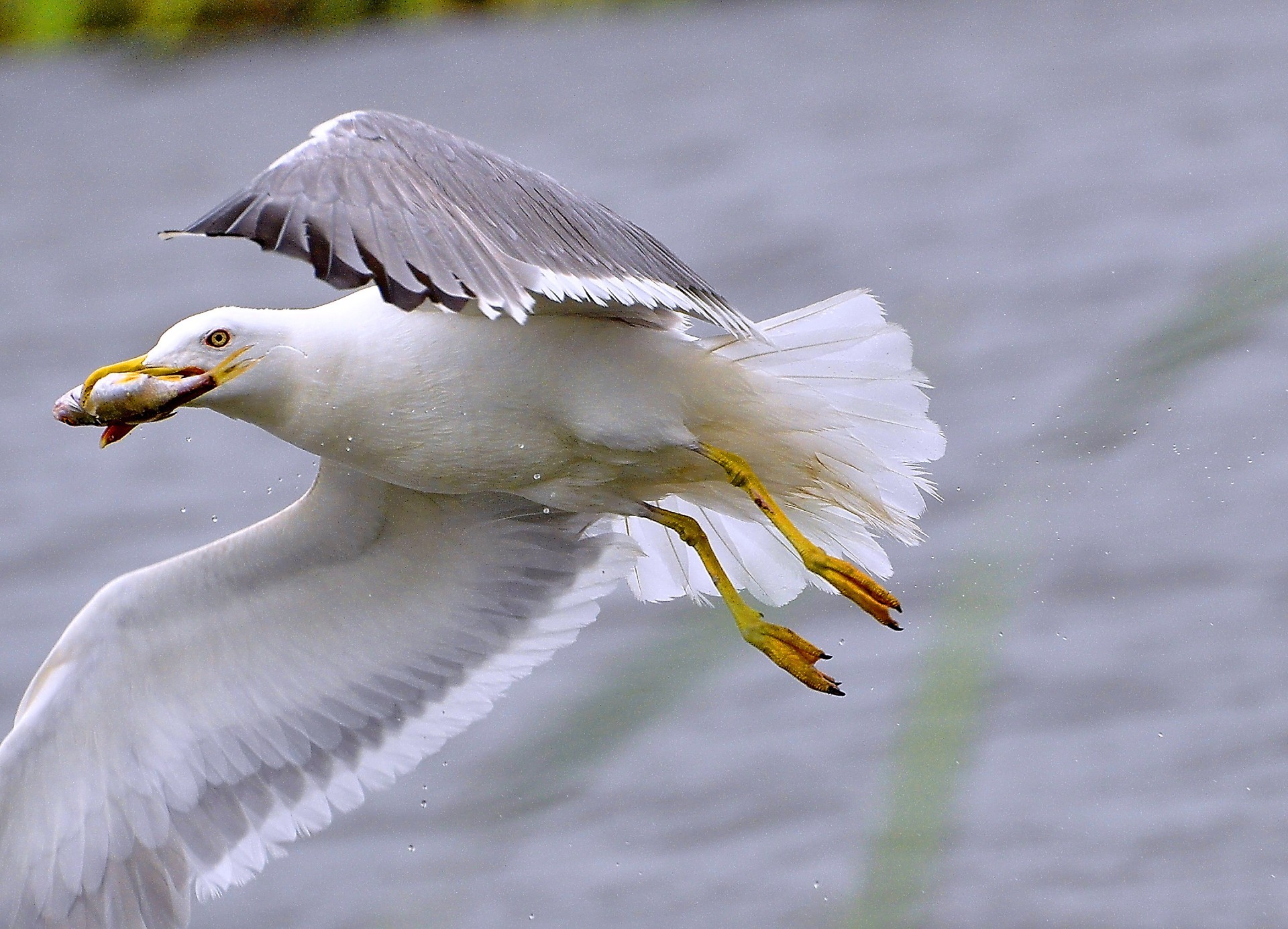 Gabbiano che pesca al volo.