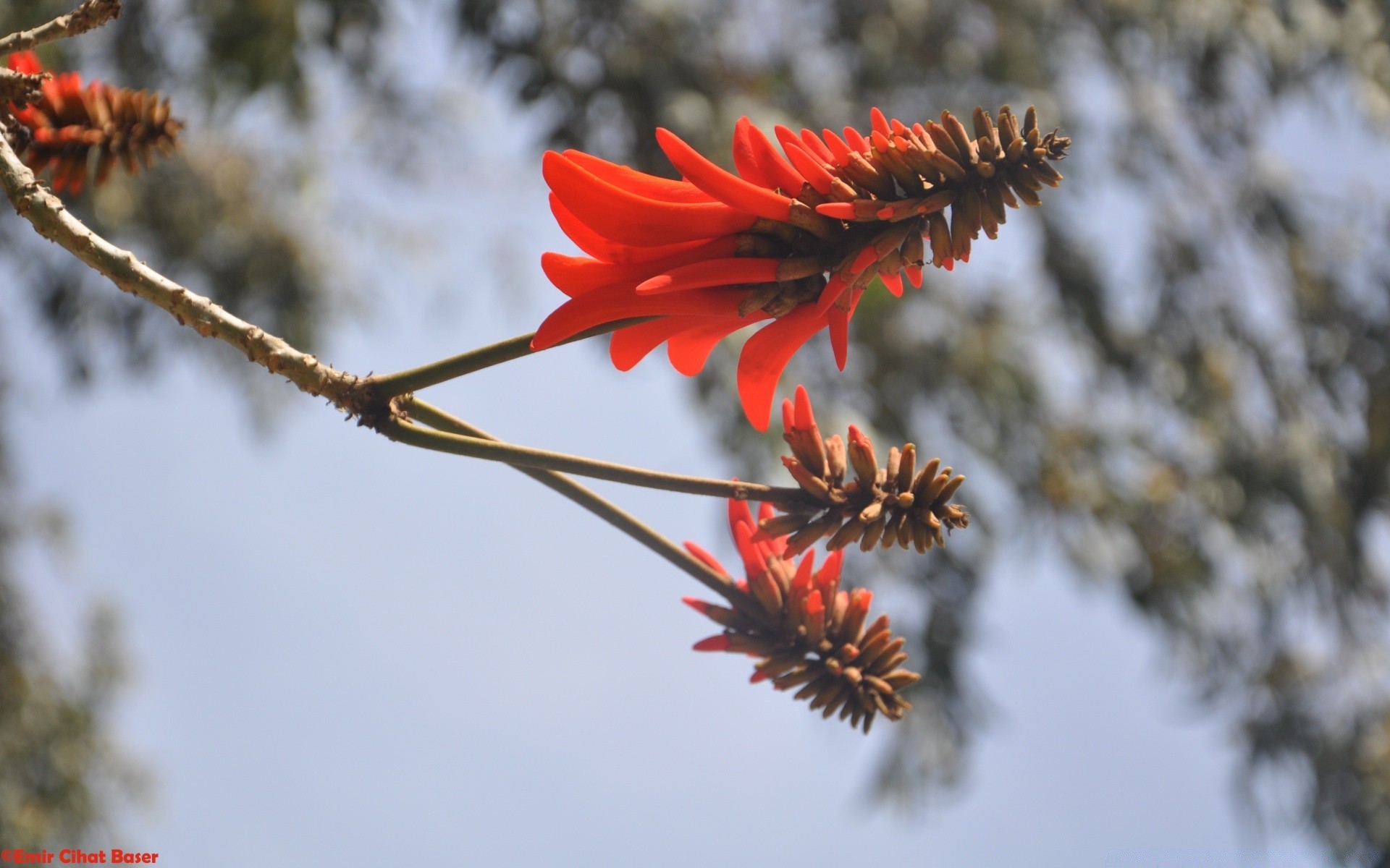 Ramo di un albero con un fiore rosso