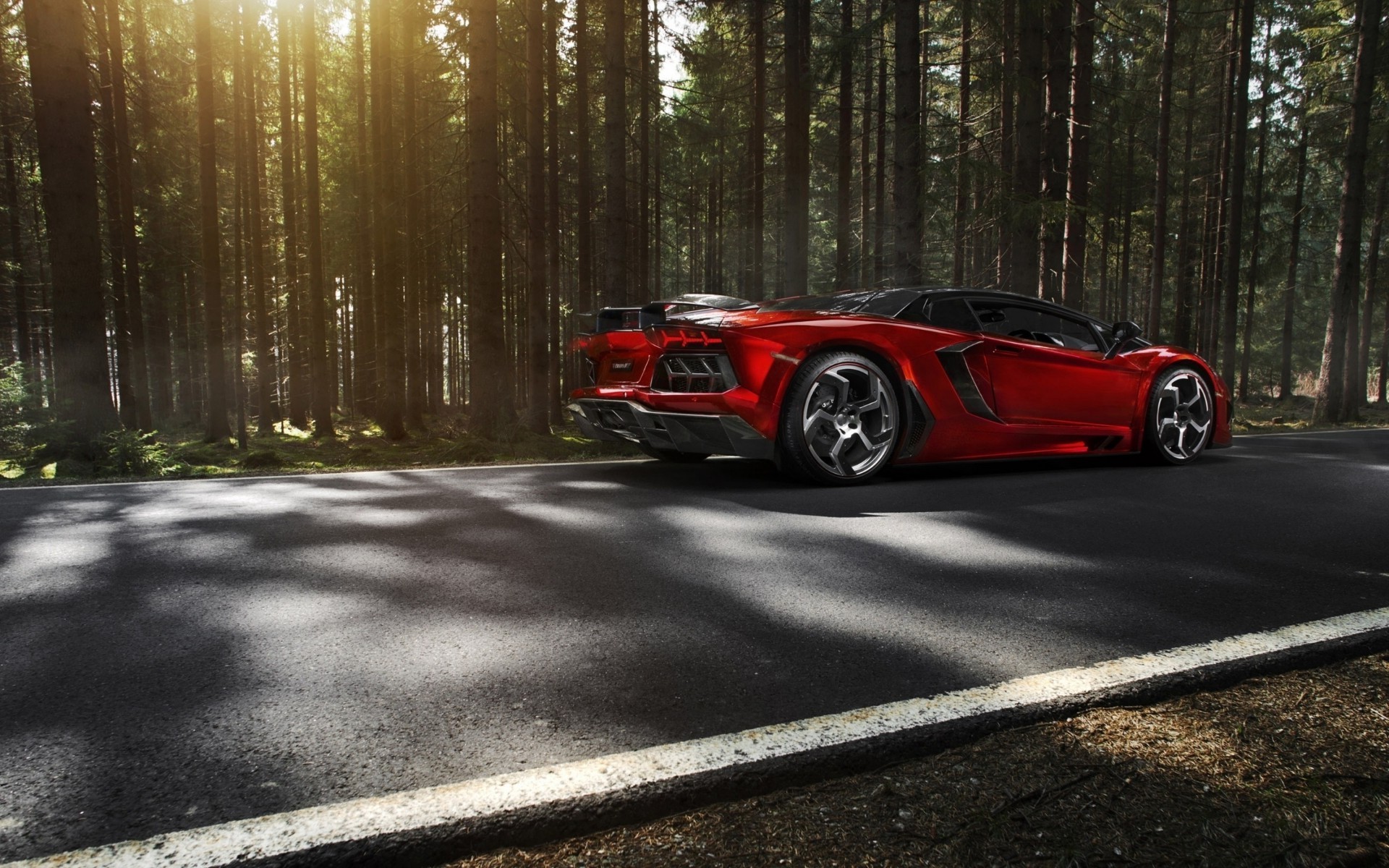 Auto sportiva sulla strada vicino alla foresta