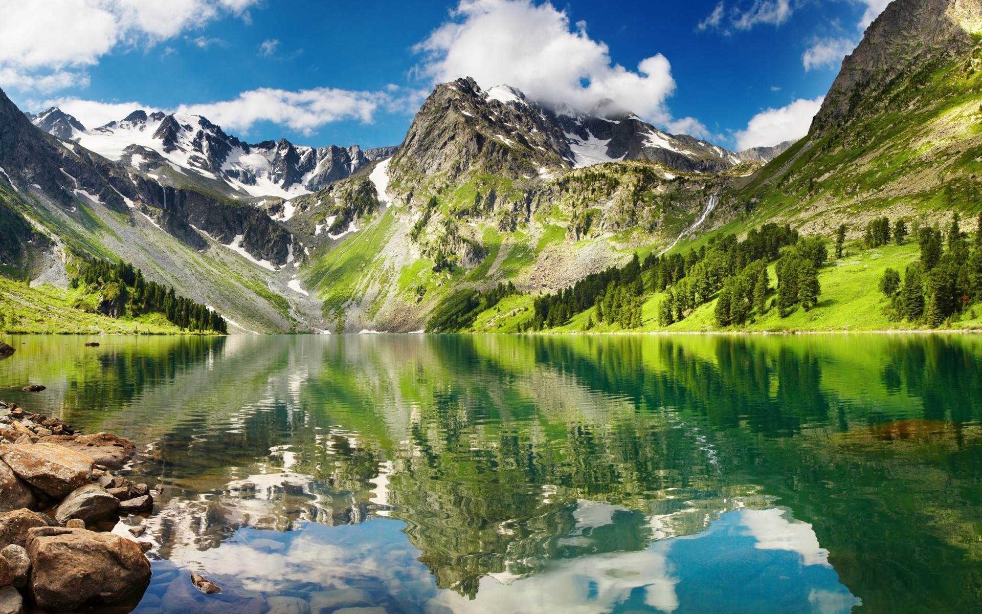 Montagna. viaggi e montagne. riflesso nell'acqua. montagne nella neve