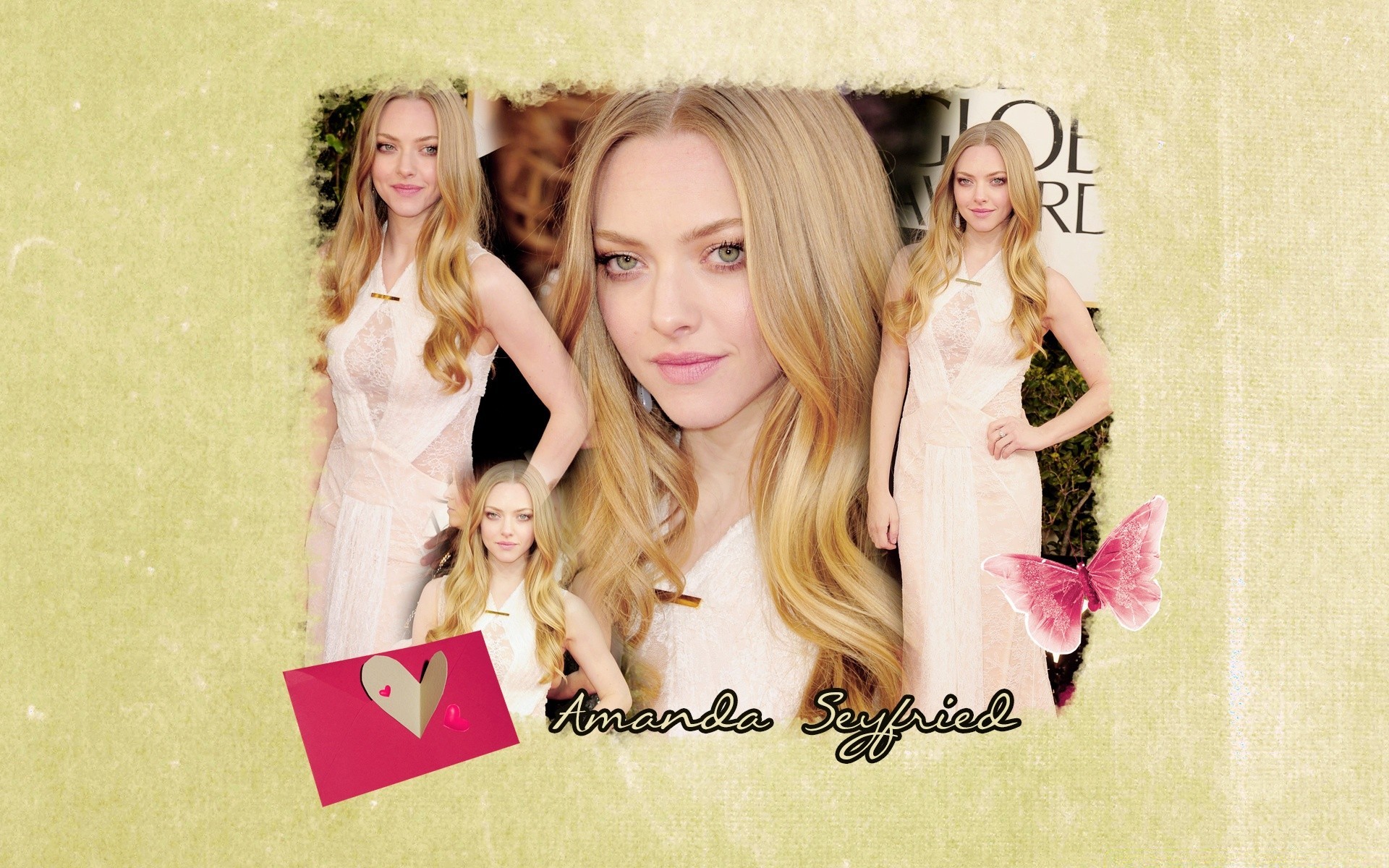 Cartolina con Amanda in abito bianco