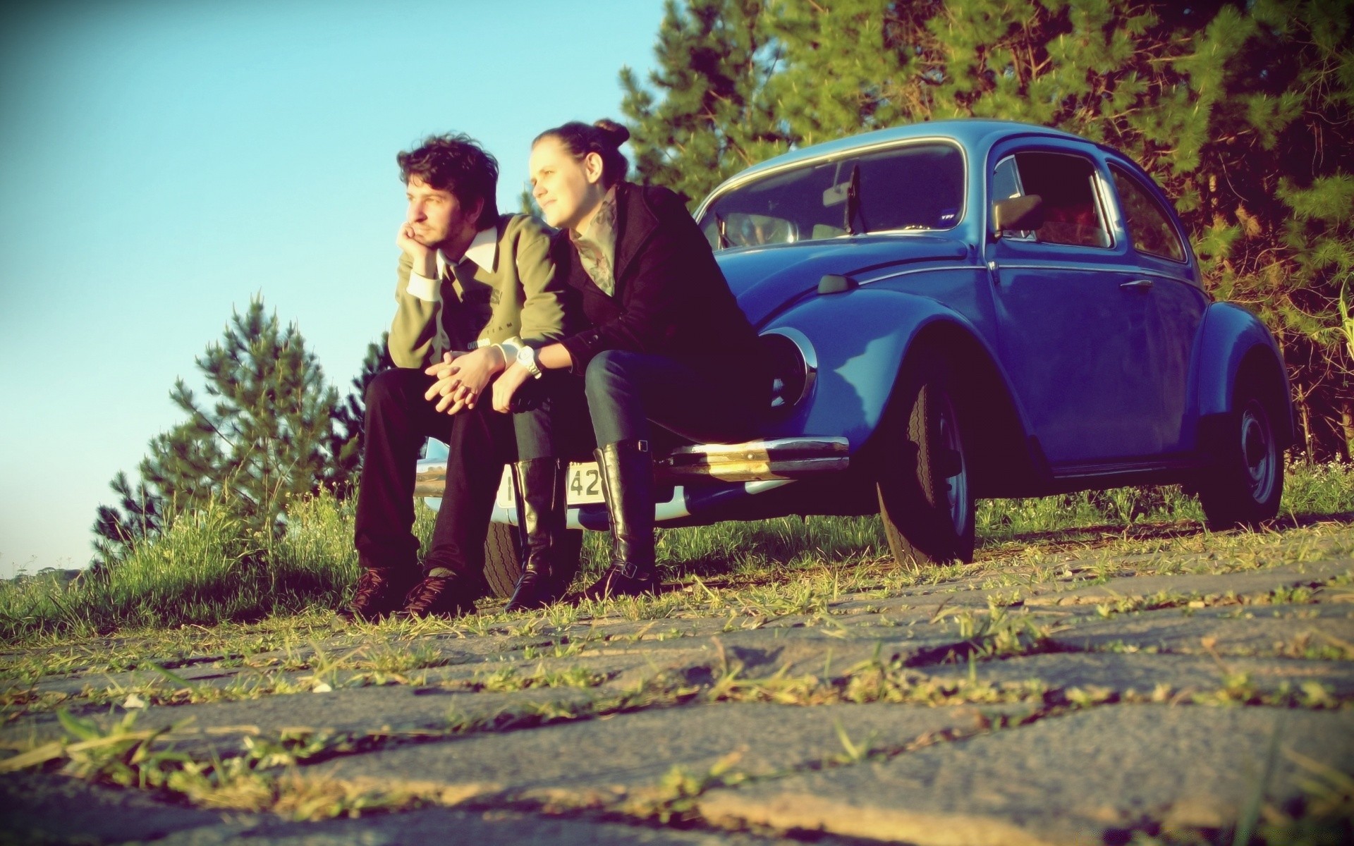 La coppia innamorata, rilassa all'aperto