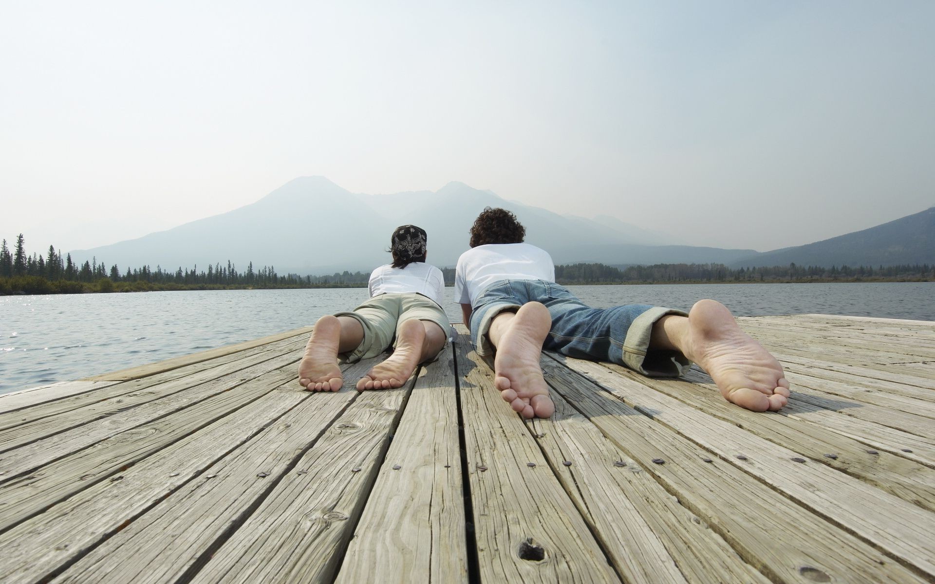 Coppia innamorata che si rilassa e guarda l'acqua