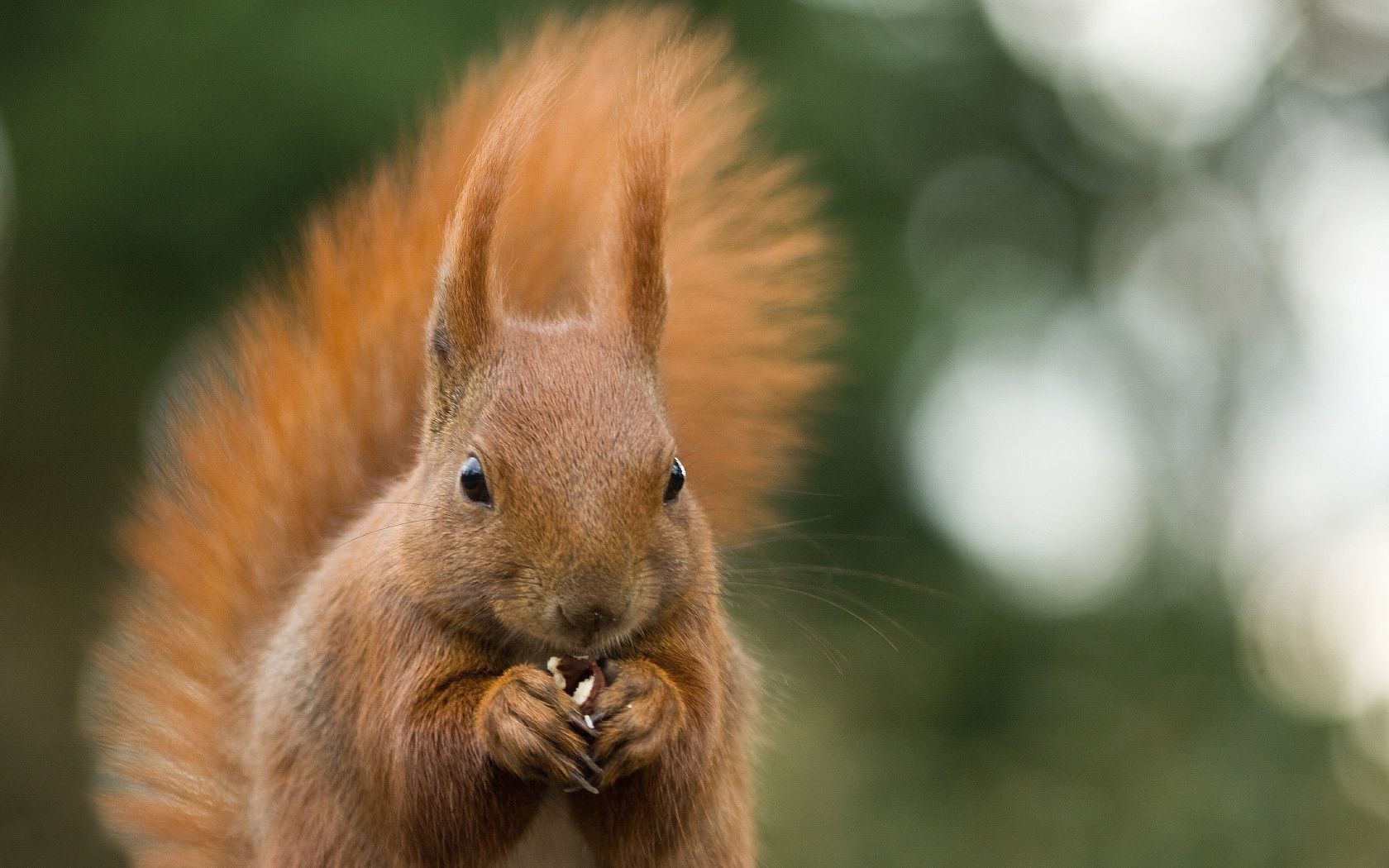 Scoiattolo animale rosicchiare noce abbagliamento natura macro verde