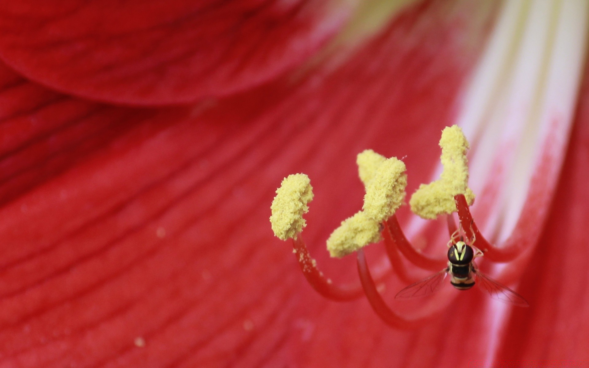 Rami di melo in fiore con una piccola ape su uno dei fiori