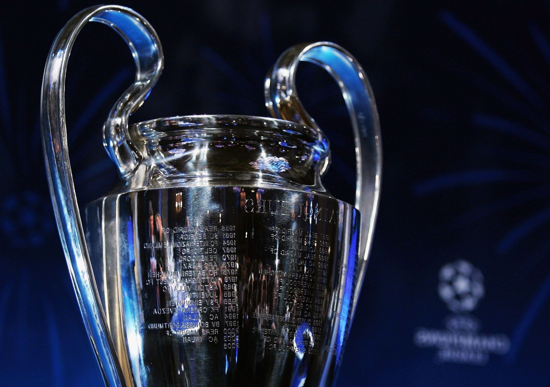 Coppa di calcio lucida con riflessi blu su sfondo scuro