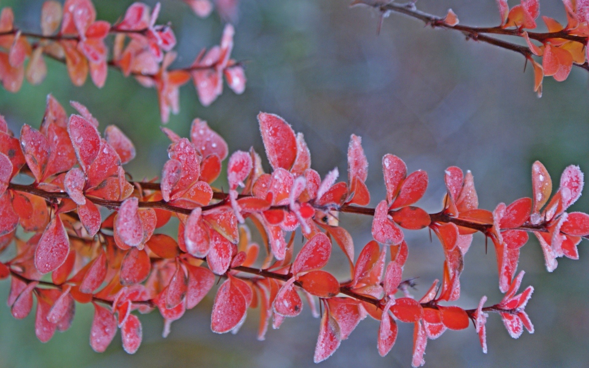Bacca di rosa canina scarlatta su uno sfondo di foglie gialle