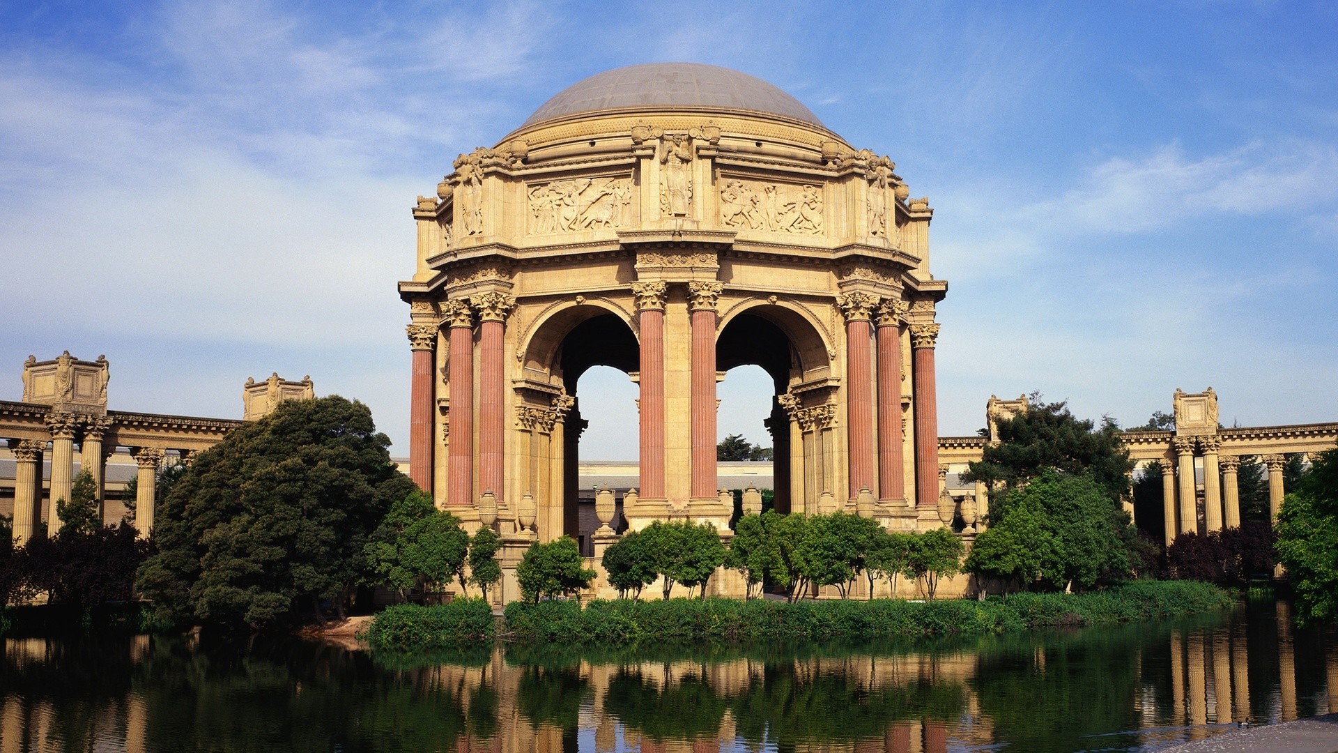 Foto di un monumento architettonico sullo sfondo di un tramonto rosa