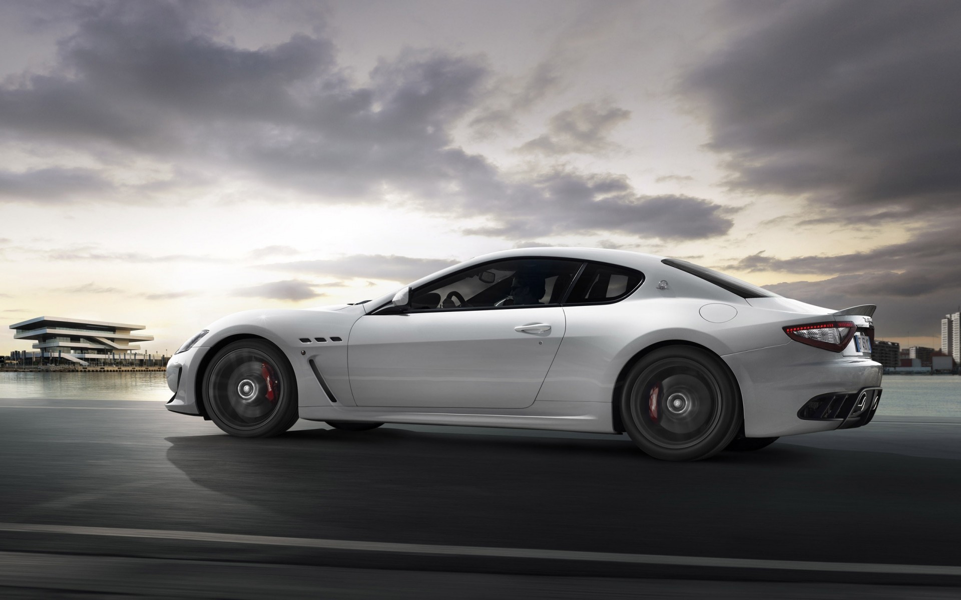 Maserati bianco su uno sfondo di nuvole