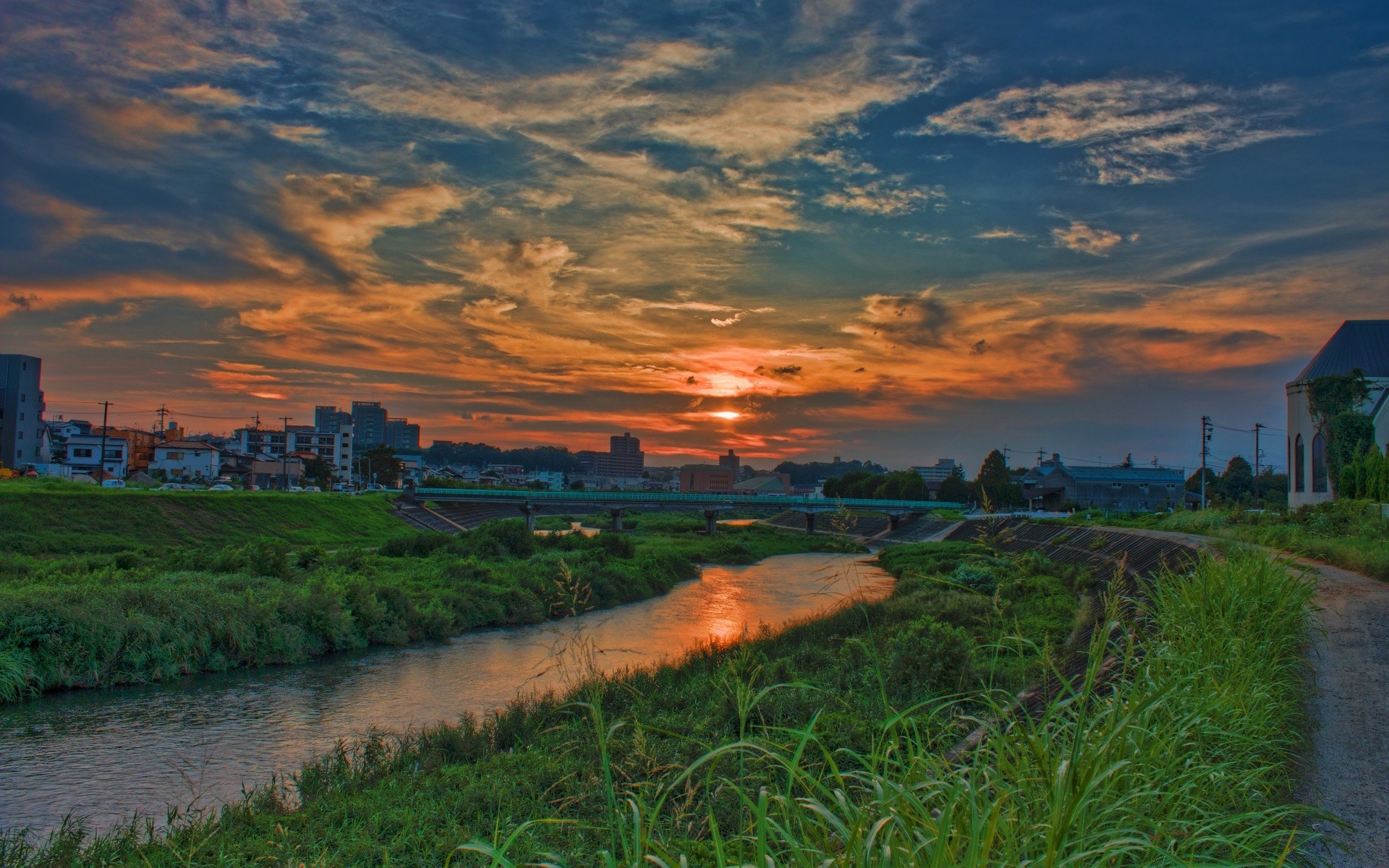 Città notturna. Bella retroilluminazione. Riflessione in acqua