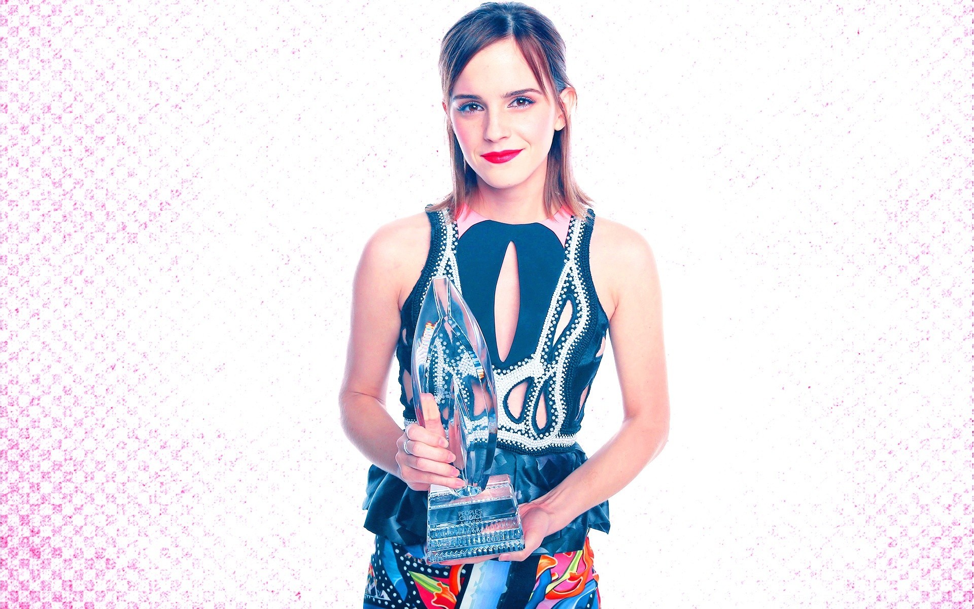 Emma Watson tiene in mano una statuetta