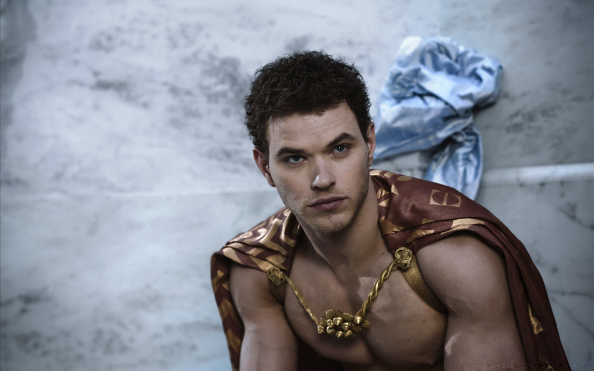 Modello bruna su sfondo grigio