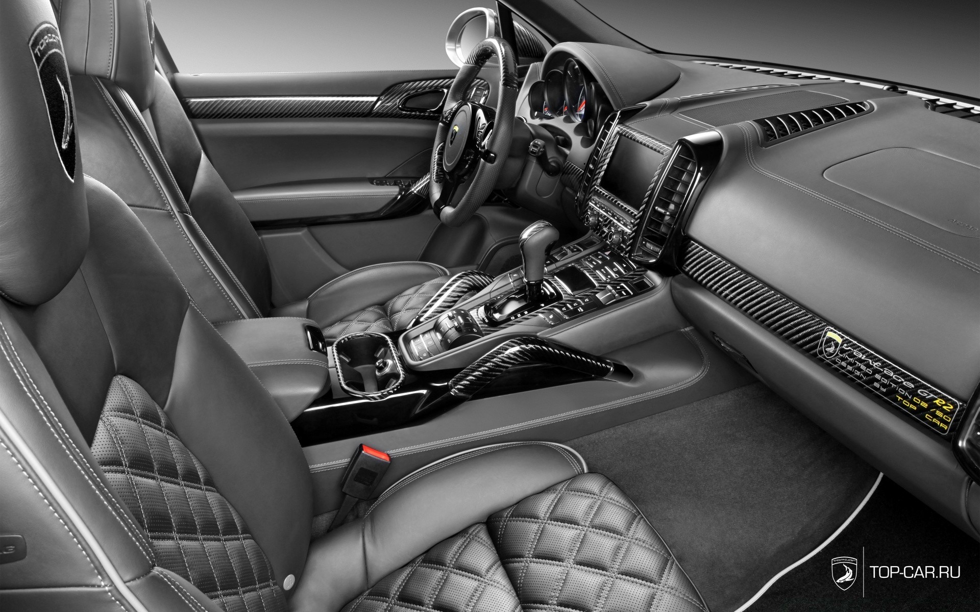 Auto futuristica con cerchi cromati sullo sfondo di un paesaggio montano