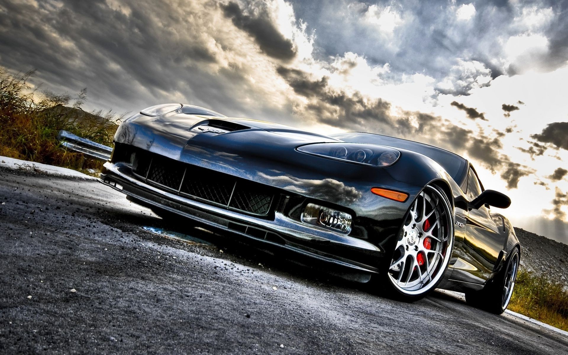 Auto grigia sullo sfondo del tramonto e tre alberi
