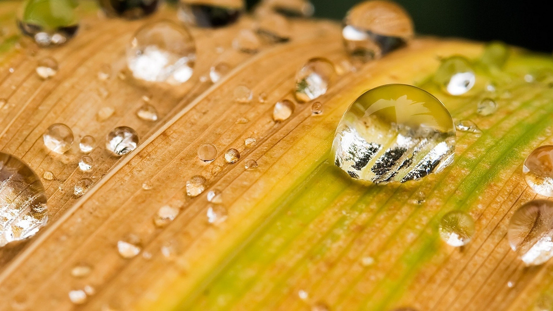 Gocce di rugiada sull'erba autunnale