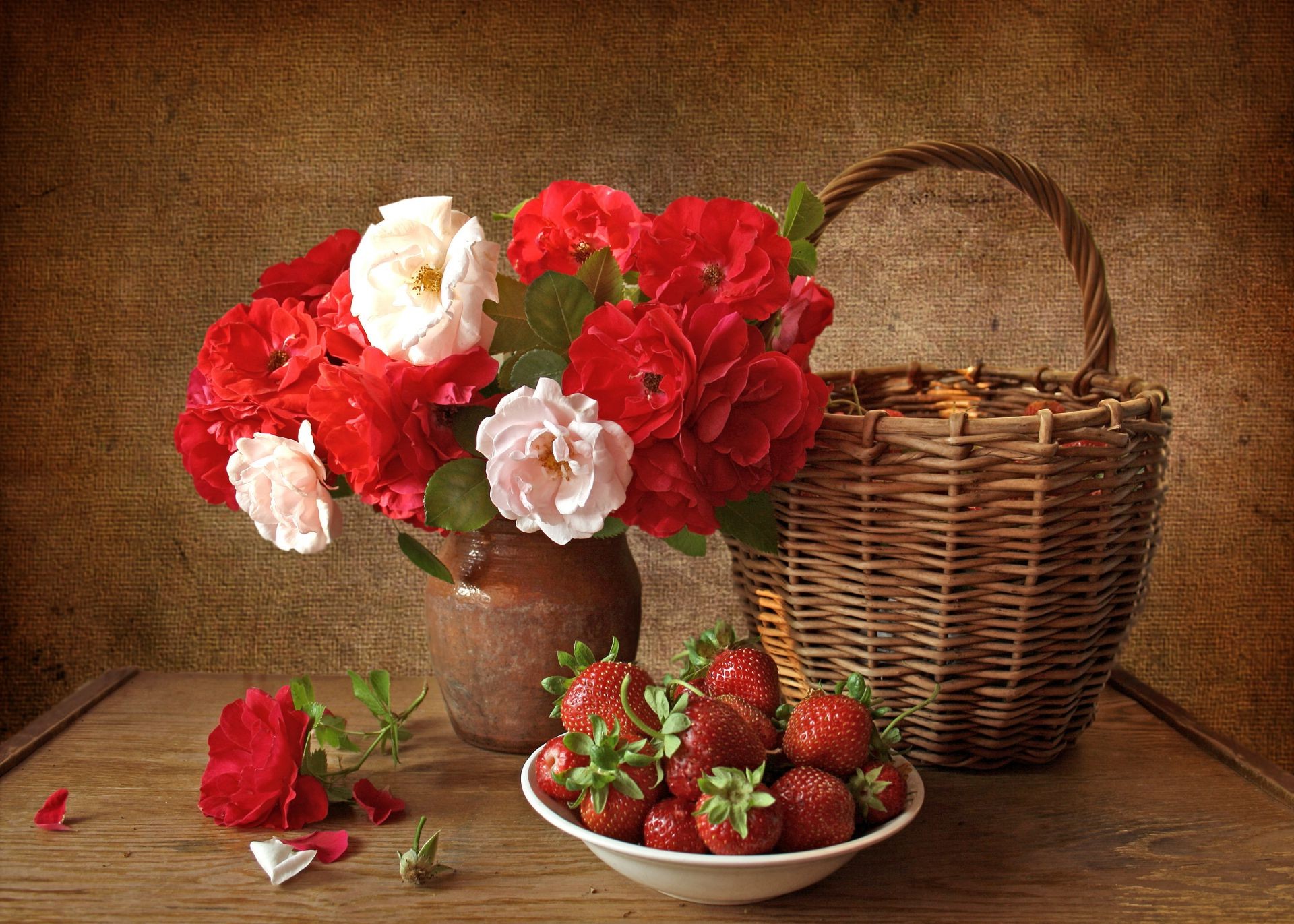 Mazzo di fiori in un vaso. Natura morta. Bacche