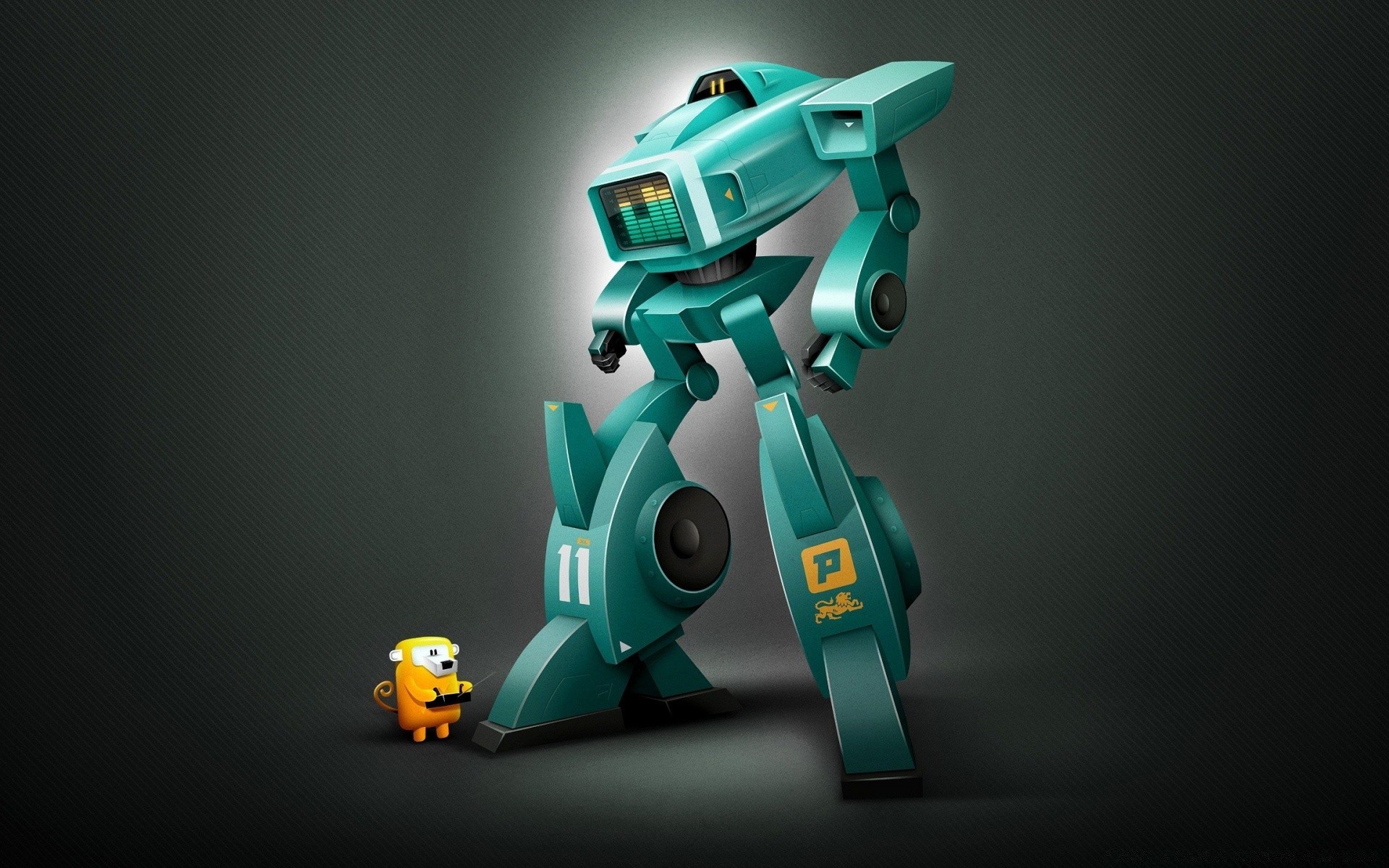 Immagine da cartone animato di un robot che guarda un gattoImmagine da cartone animato di un robot che guarda un gatto
