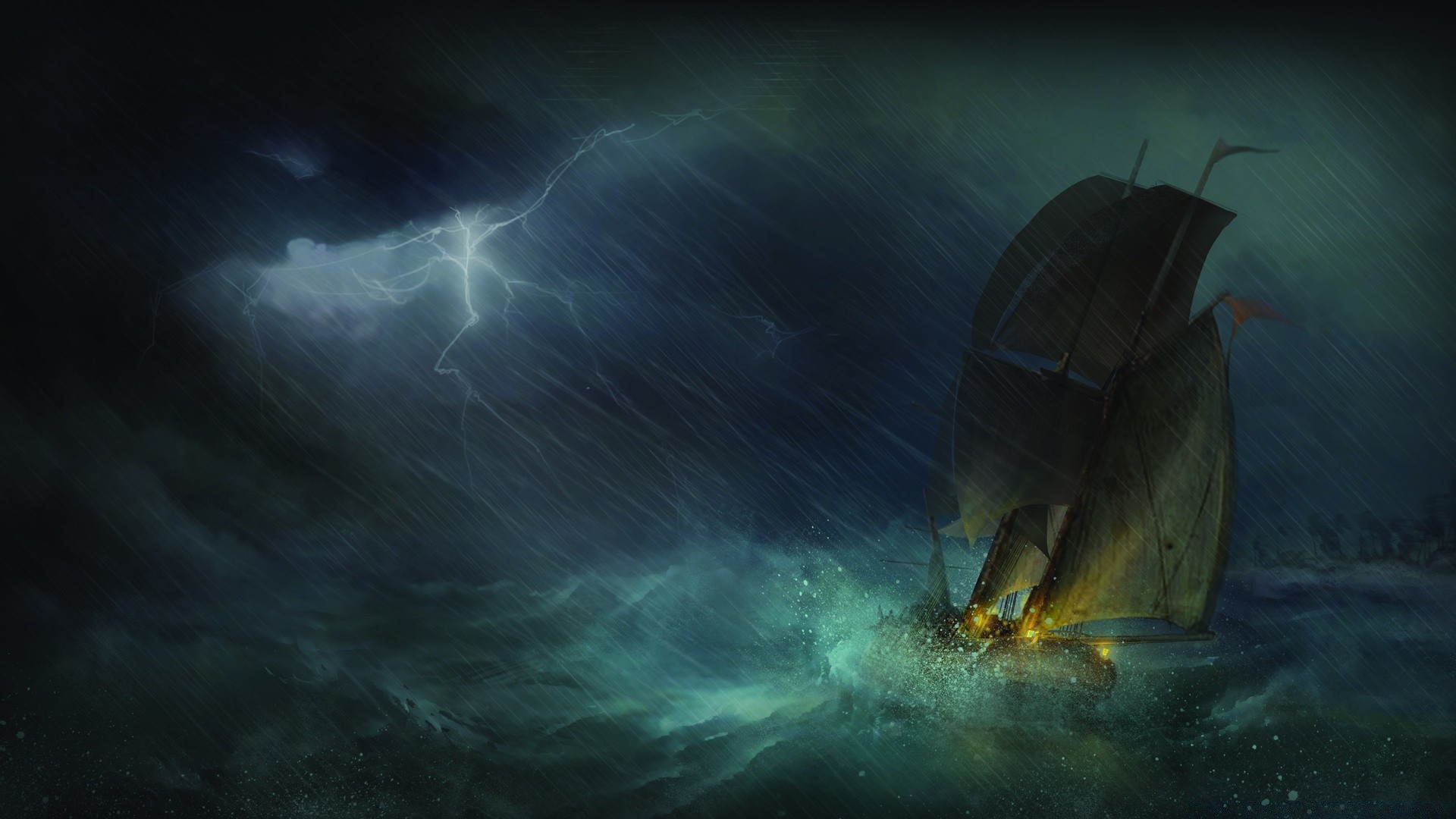 Barca a vela cammina sulla superficie dell'acqua al tramonto