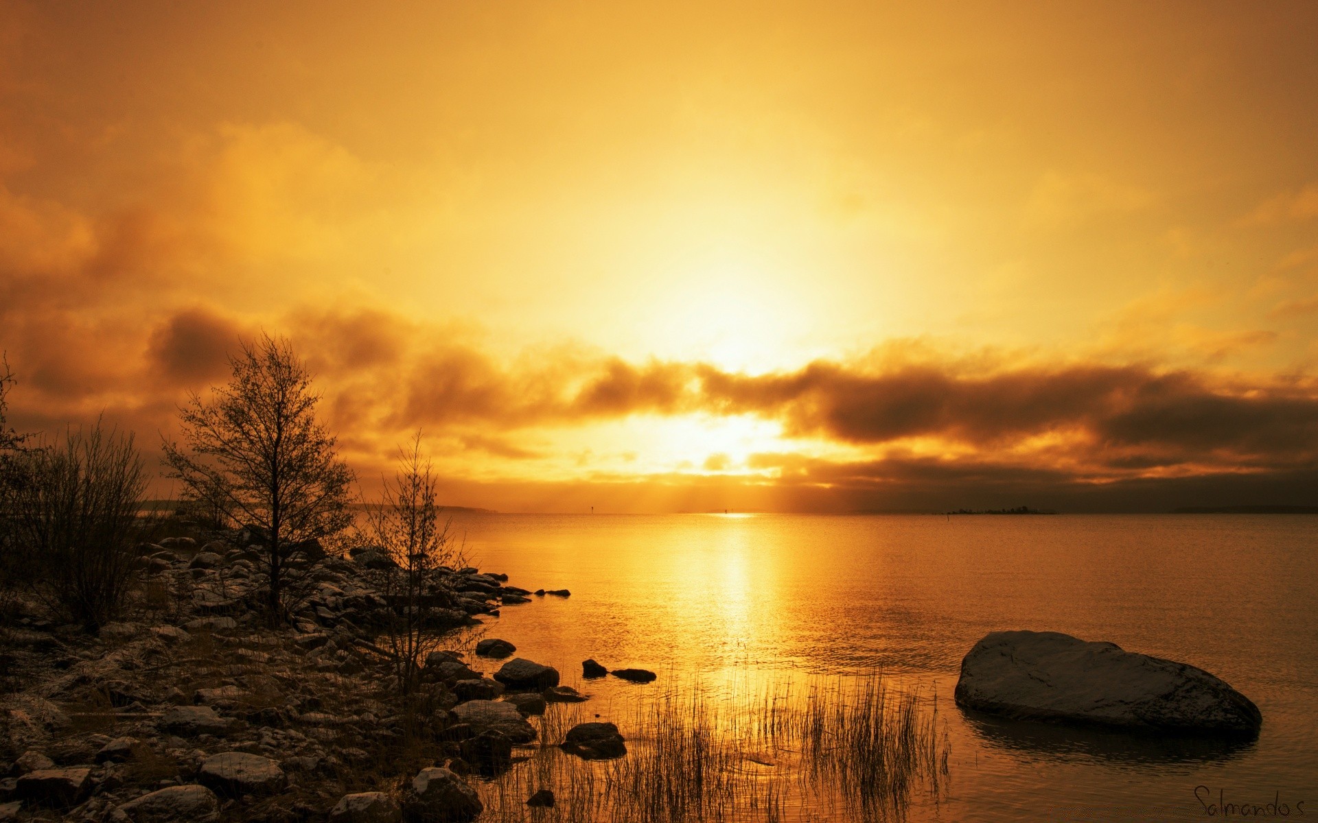 Bellissimo tramonto sul lago