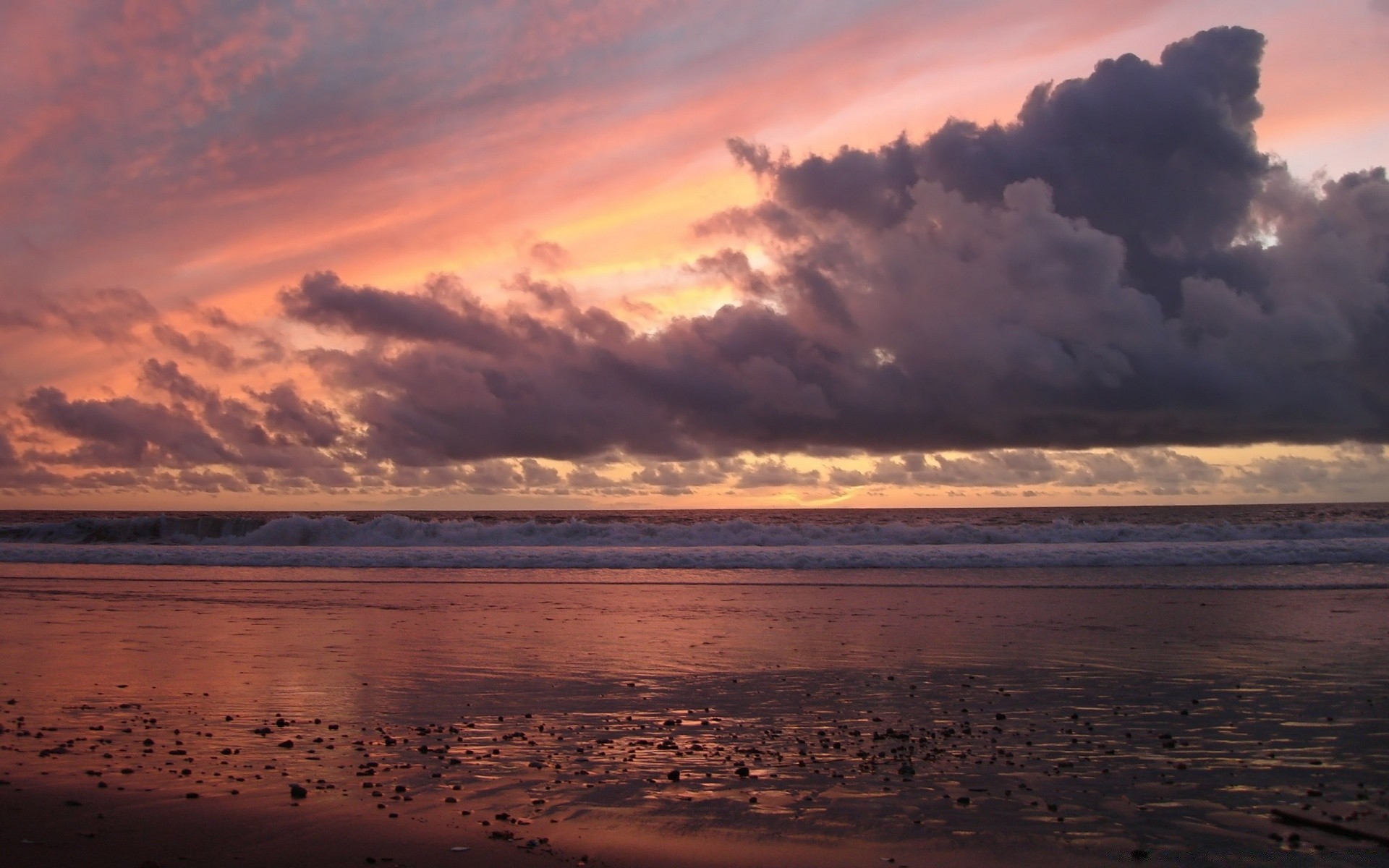 Bellissimo tramonto sulla spiaggia dell'oceano