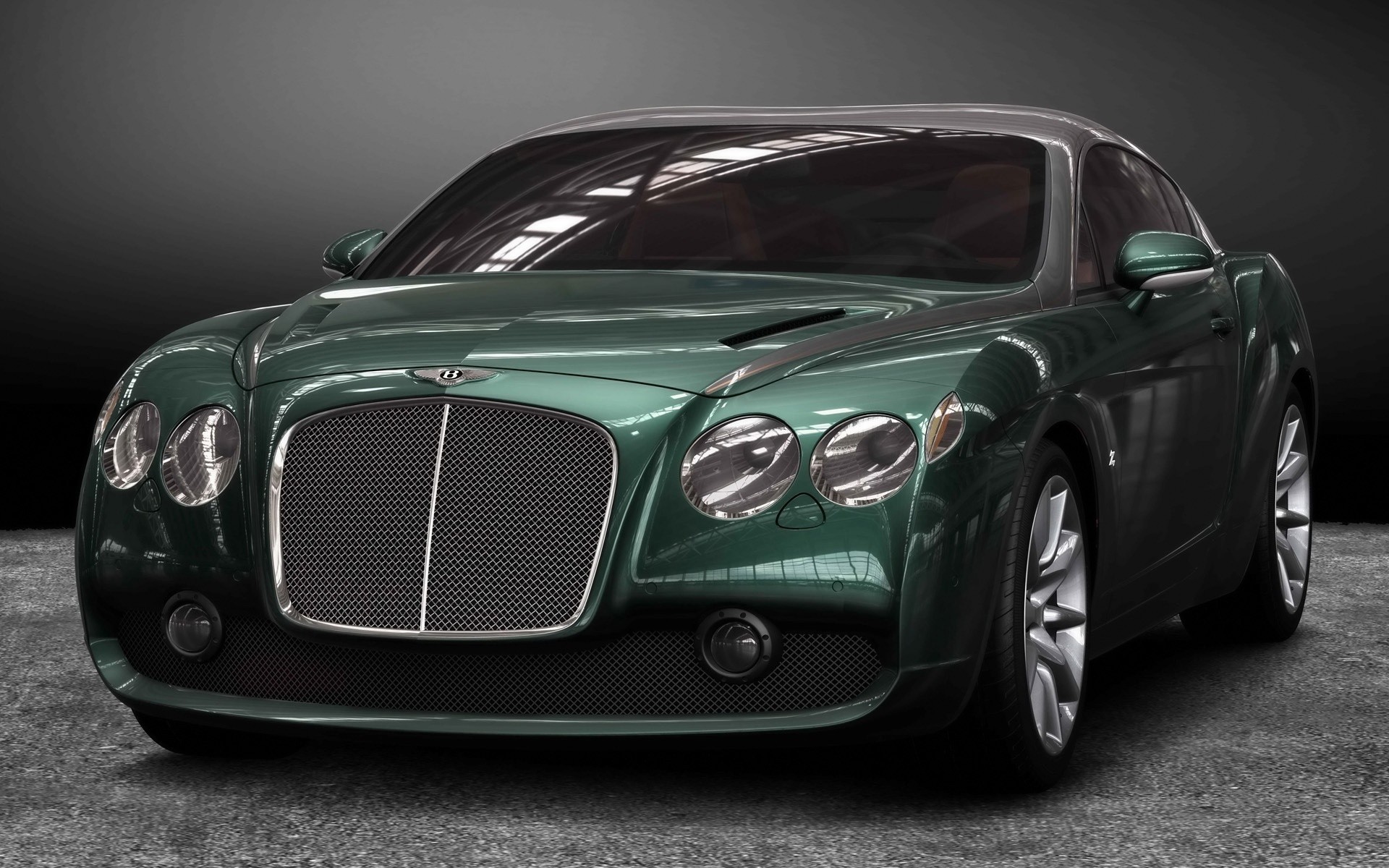 Una bentley rossa cavalca su un aswalt sfocato illuminato