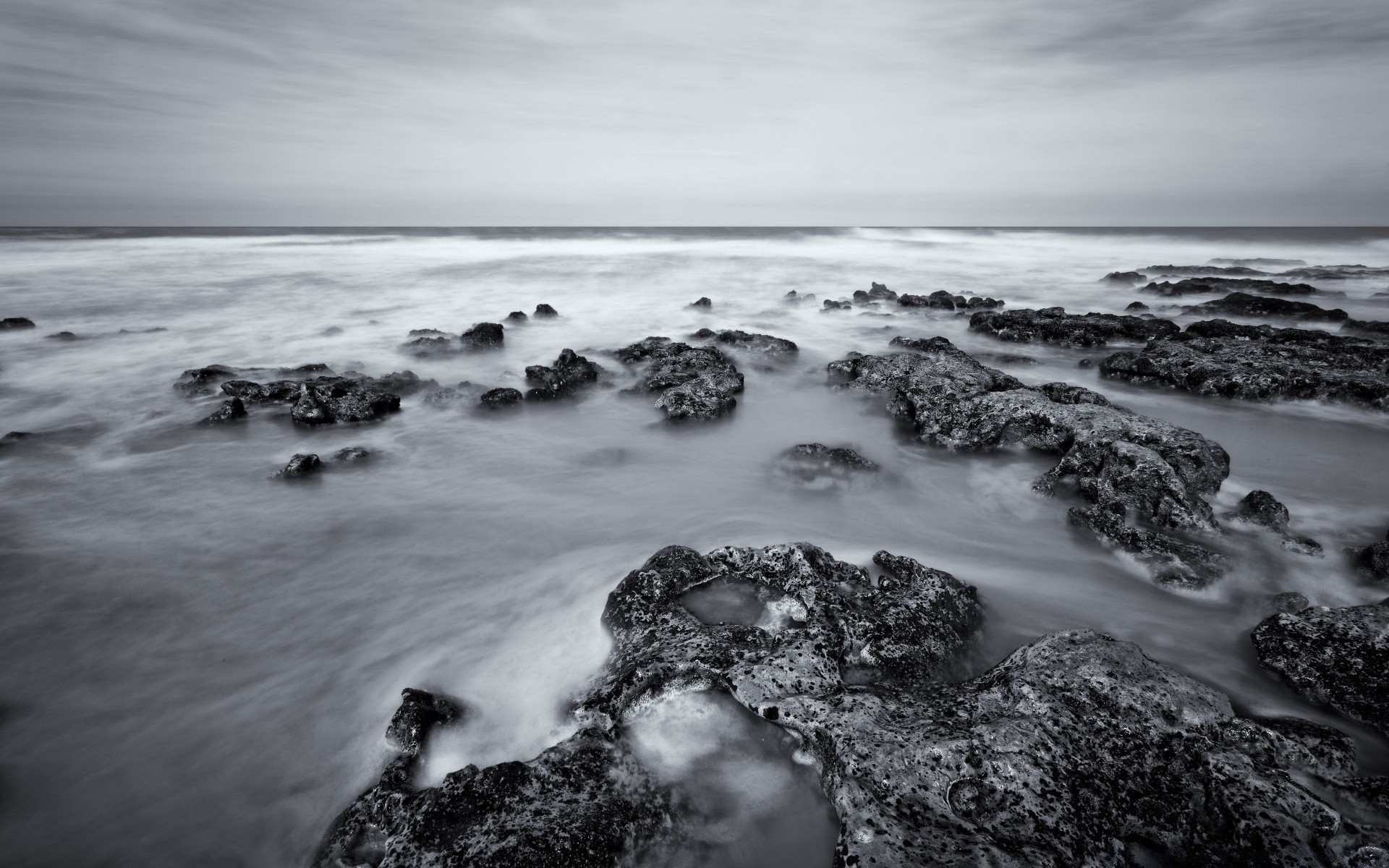 Paesaggio in bianco e nero panchina e autostrada In primo piano dietro un sacco di pietre sopra il cielo con le nuvole