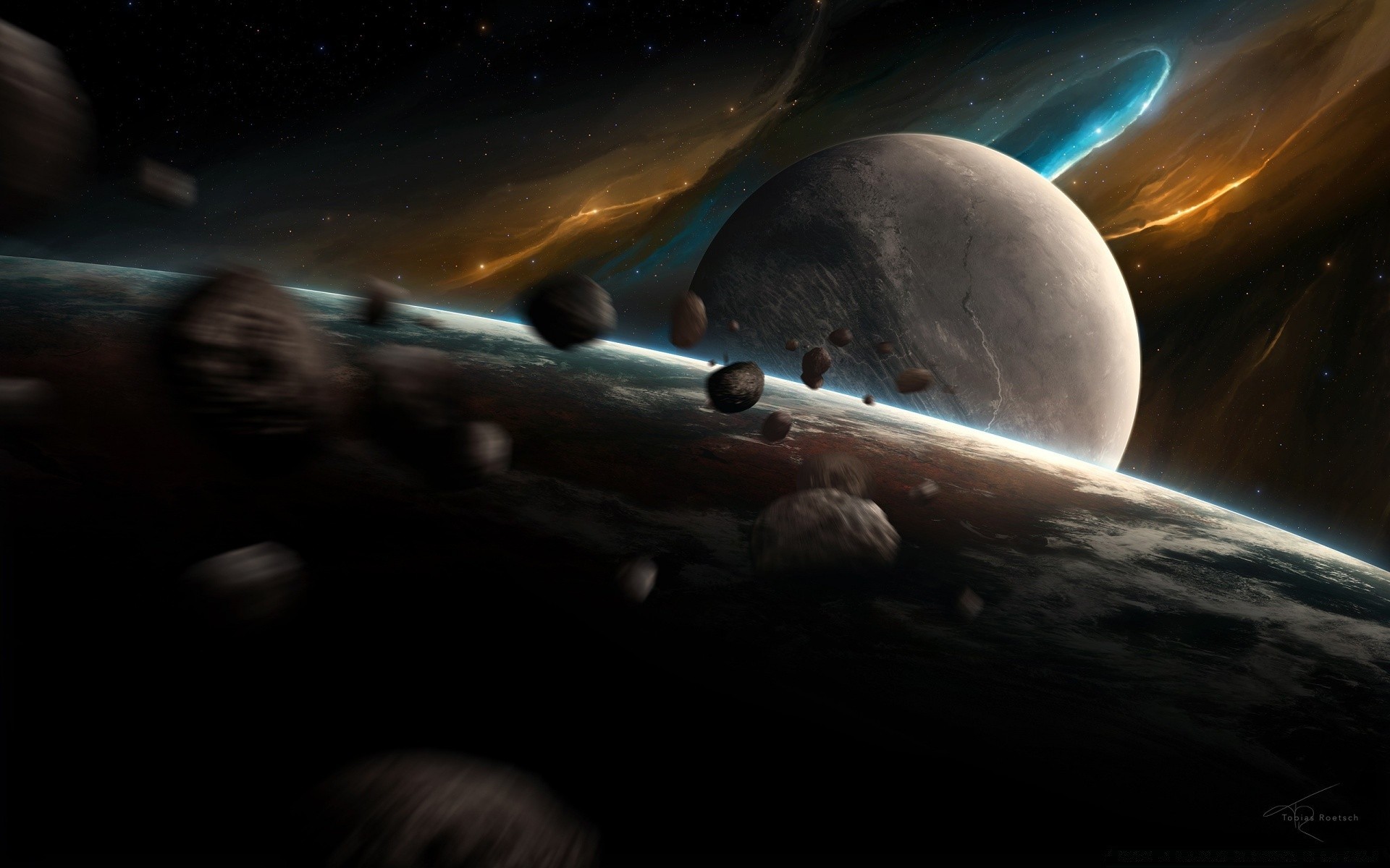 Vista della Luna dalla cintura di asteroidi di un altro pianeta