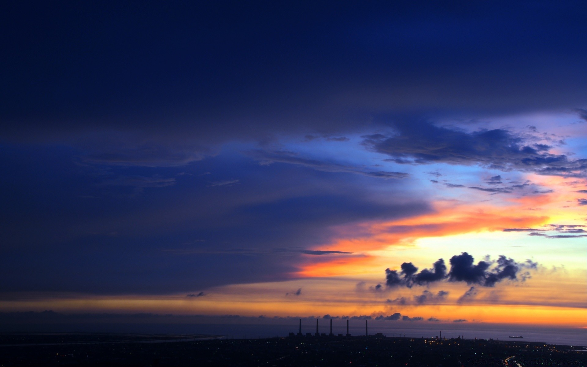 Cielo blu scuro e tramonto giallo
