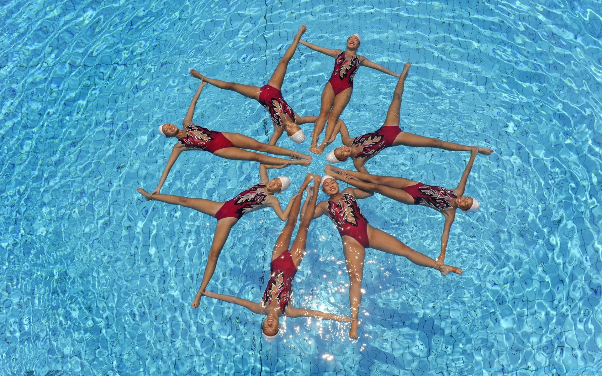 Le ragazze del nuoto sincronizzato hanno raffigurato un modello